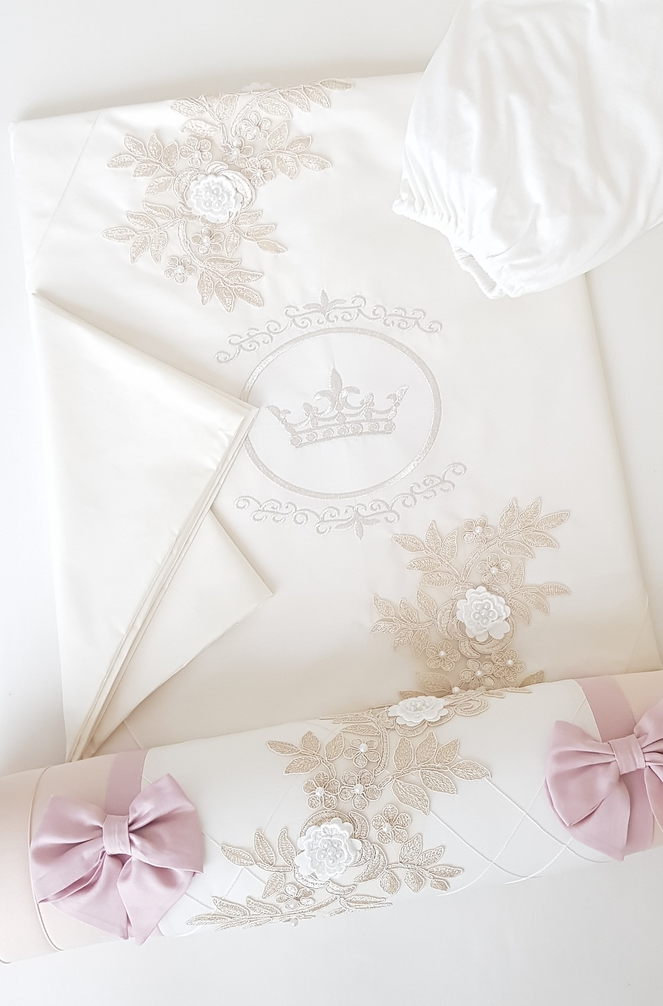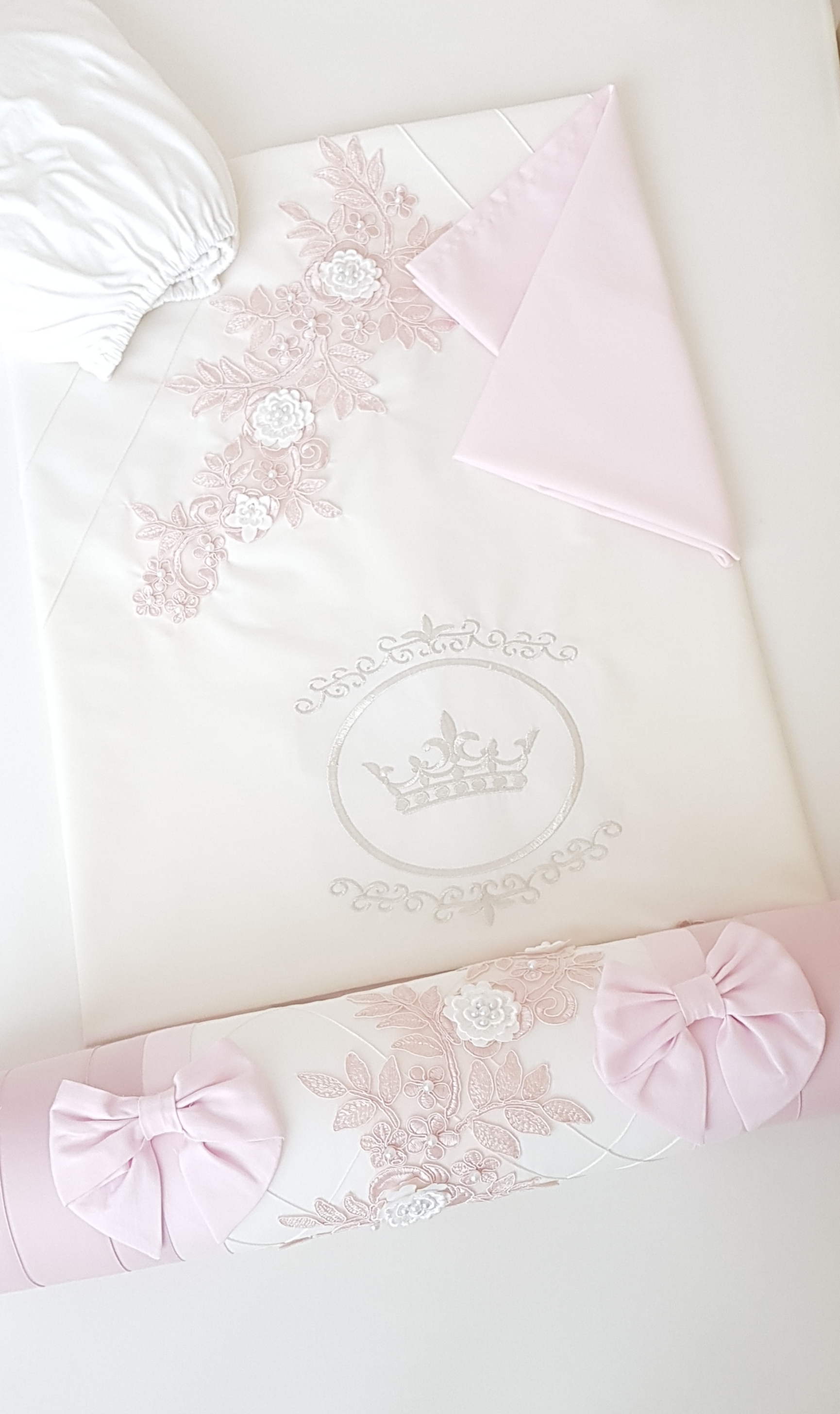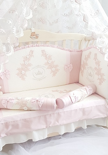 Набор в кроватку для новорожденных Ecoline Angelica (эколайн анжелика) - очень красивый комплект для классических кроваток с 3 бортиками, 2 валиками- ограничителями и постельным бельем. Благодаря 3 бортикам малышу будет комфортно, безопасно и мягко. А сторона не закрытая бортиками может быть закрыта валиками. При таком сочетании вы будете видеть малыша, наблюдать за ним, но в то же время защитите малыша от соприкосновения с бортиками кроватки и обеспечите хорошую вентиляцию малышу.