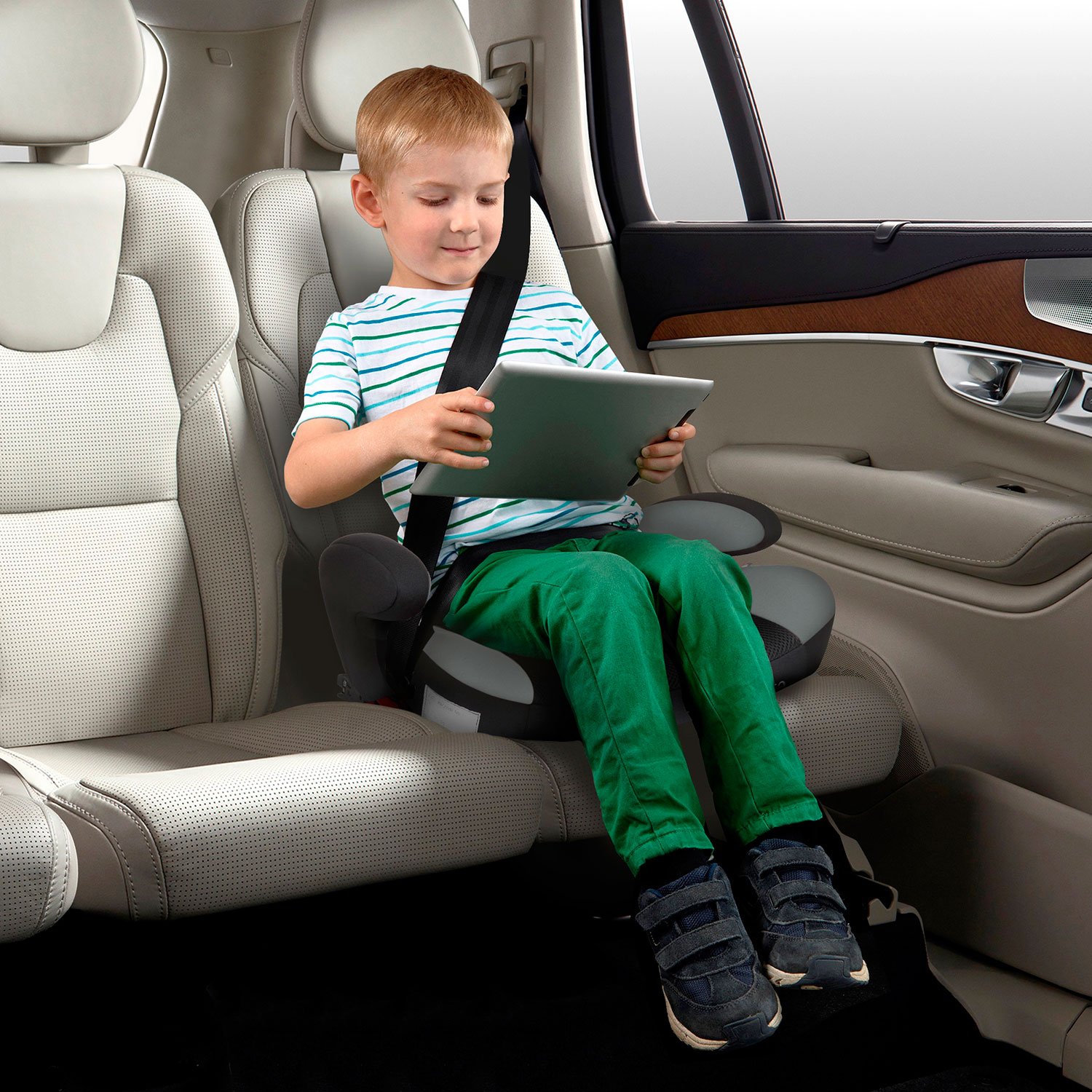 Бустер оборудован системой изофикс, что позволит быстро и надежно установить его в машину. Но если в машине данная система не предусмотрено, кресло можно установить с помощью штатного автомобильного ремня.
