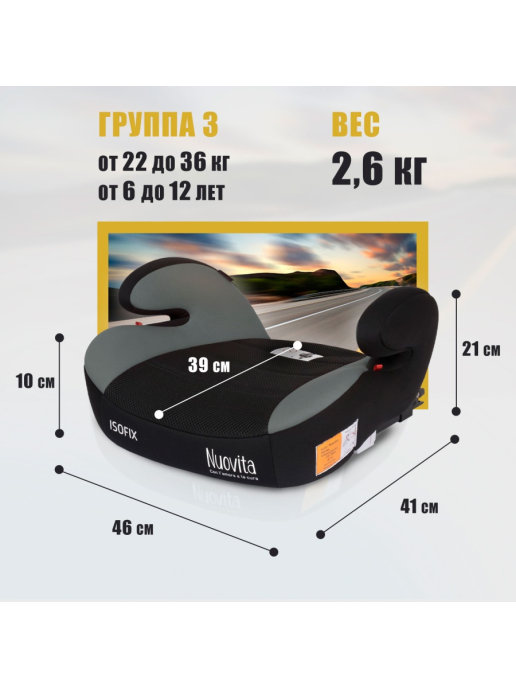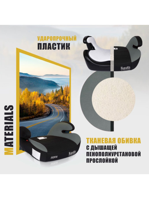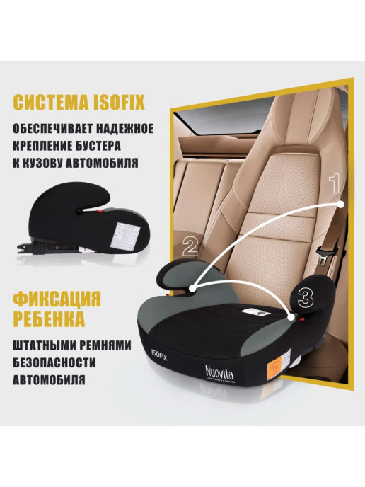 Бустер Nuovita Maczione NBi-1 (Нуовита Макзионе ) - автомобильное сидение для ребенка от 6 лет с системой изофикс. Сидение разработано с учетом анатомических особенностей ребенка, обеспечивая комфорт во время поездки на машине. Кресло выполнено из качественной ткани с оптимальной шириной и глубиной сидения.