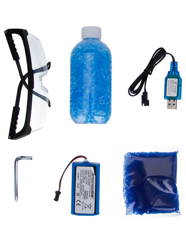 - В комплекте: USB зарядка, защитные очки, наклейки, 10 тыс. гидрогелевых шариков