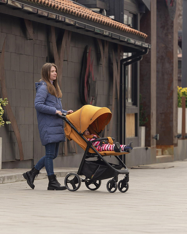Коляска легкая, маневренная и отлично управляется даже одной рукой. Все колеса из EVA, а передние колеса поворотные на 360 градусов. Ну а вместительную корзину оценит любая мама, ведь, помимо игрушек малыша, в нее поместятся еще и все покупки.