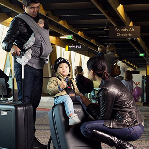 Этот удобный чудо-чемодан облегчает прохождение лабиринтов коридоров и всевозможных точек контроля в аэропортах, так как помимо вещей его можно использовать и для перевозки ребенка: он легко и быстро трансформируется в устойчивое и маневренное четырехколесное детское сидение и обратно – в удобный двухколесный чемодан с ручкой, который можно взять на борт самолета в качестве ручной клади, вне зависимости от того, путешествуете вы с ребенком или без.