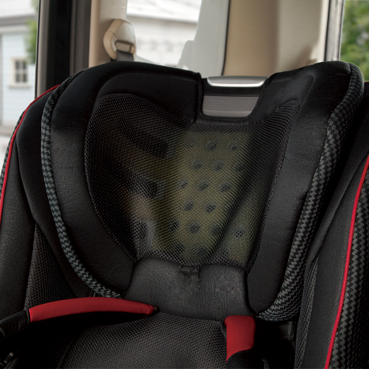 Часть обивки авто-кресла выполнена из специального 3Dдышащего материала,что отводит лишнее тепло в местах контакта кожи малыша с авто-креслом.