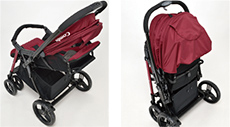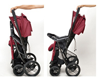 - Сложение коляски одной рукой. Чтобы сложить данную коляску, достаточно одной свободной руки(ведь другая всегда занята малышом, да еще и сумкой) и одного нажатия на клавишу( при этом коляска будет устойчиво стоять в сложенном состоянии). Ну и конечно же уникальная особенность: автоматический подъем разложенной спинки в вертикальное положение при складывании коляски, и опускание в исходное при раскладывании.