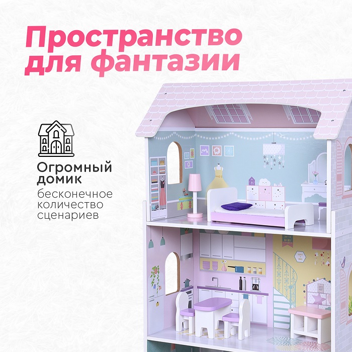 - Трехэтажный домик с мебелью.