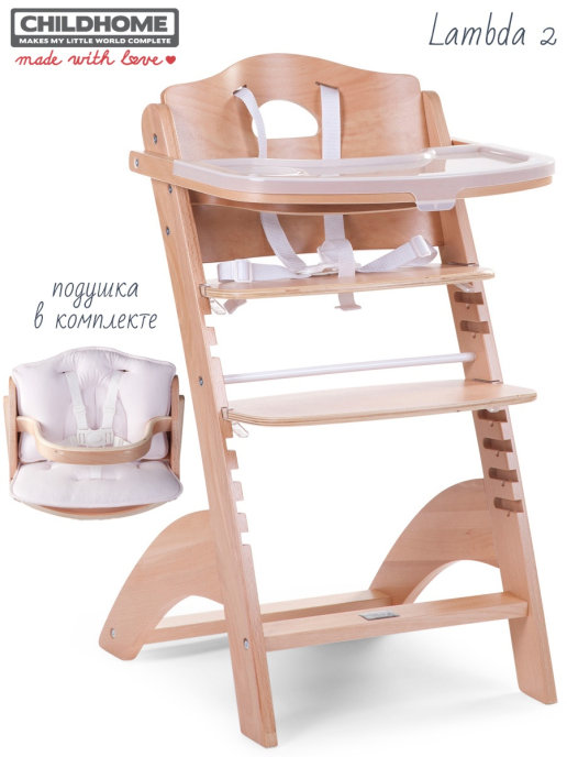 Стул для кормления Childhome Lambda 2 (Чайлдхоум Лямбда)- это деревянный, экологически чистый, «правильный» стул для вашего малыша от 6 месяцев. Удобно подстраивается под вашего ребенка и растет вместе с ним. В комплекте идет мягкий вкладыш, который сделает пребывание на детском стуле еще более комфортным и удобным. Подножка регулируется в нескольких положениях по высоте, благодаря чему ноги малыша не висят в воздухе. Большой деревянный столик со съемным подносом очень пригодится во время еды, игр или занятий.