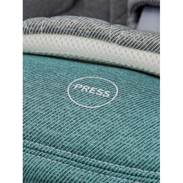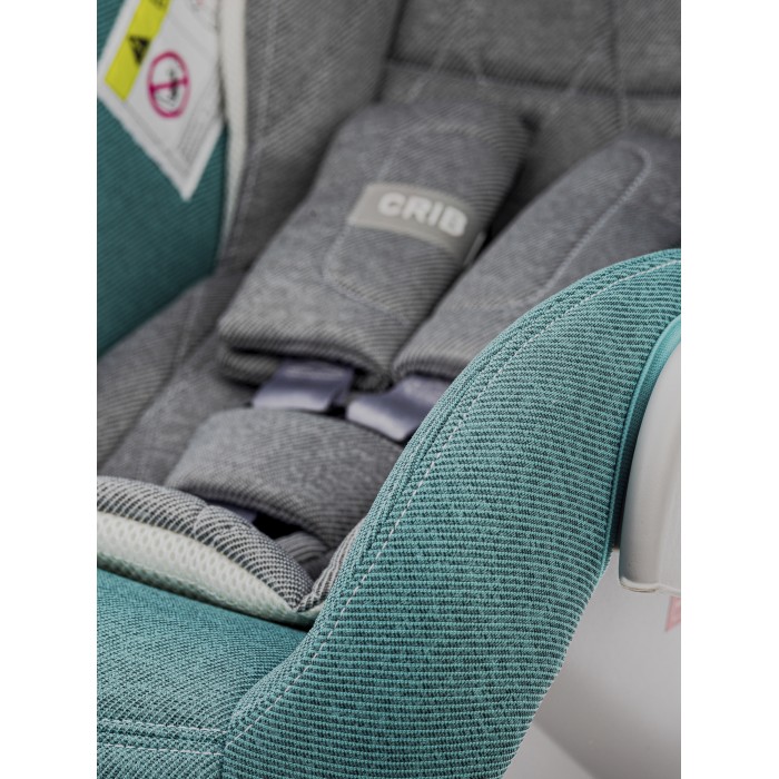 Кресло оснащено ремнями безопасности и удобным вкладышем матрасиком. Матрасик имеет 2 стороны: 1 сторона "летняя" более дышащая, 2 сторона более плотная, стеганная и отлично подойдет для прохладного времени года. Вся обивка кресла снимается для стирки, что обеспечит простоту в уходе за изделием.