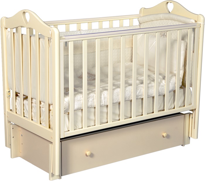 Кровать Антел Каролина 4/6 - универсальная кроватка из березы, украшенная сердечками. Очень удобный и практичный вариант для ребенка с рождения до 3-4 лет. У кровати есть все необходимое для комфортного сна новорожденного, а так же для удобного пользования. 2 положения дна позволят маме удобно общаться с малышом. Передняя стенка снимается или опускается при необходимости. Универсальный маятник позволит родителям попробовать два вида качания кроватки и выбрать именно тот, который подойдет для вашего ребенка. Модель отличается прекрасным качеством и долговечностью.