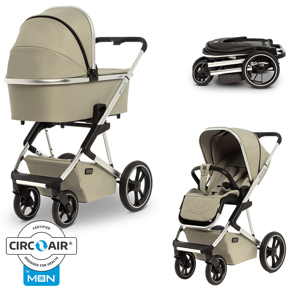 Коляска Moon Style 2 в 1 (Мун стайл) - продуманный, качественный, немецкий транспорт для ребенка с рождения до 3-4 лет. Это современная, компактная коляска 2 в 1 с большими всепроходимыми колесами и легким управлением. Большая каркасная люлька с легким весом и уникальным матрасиком повышенной комфортности. Вы сможете удобно переносить ребенка в люльке, а при необходимости использовать люльку как ночную кроватку, для этого предусмотрены ножки внизу люльки.