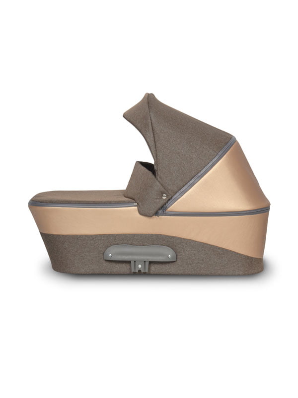 Обивка у коляски - высококачественная ткань с водо- и грязеотталкивающей пропиткой и вставками из глянцевой эко кожи. В капюшоне предусмотрена вентиляционная секция для прогулок в теплое время года. Внутри люльки только качественная дышащая обивка и мягкий матрасик. Прогулочный блок с установкой по ходу и против хода движения оснащен 5-ти точечными ремнями безопасности, системой от сползания и удобным бампером.