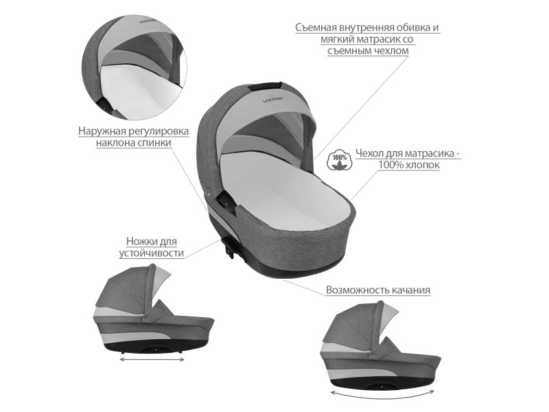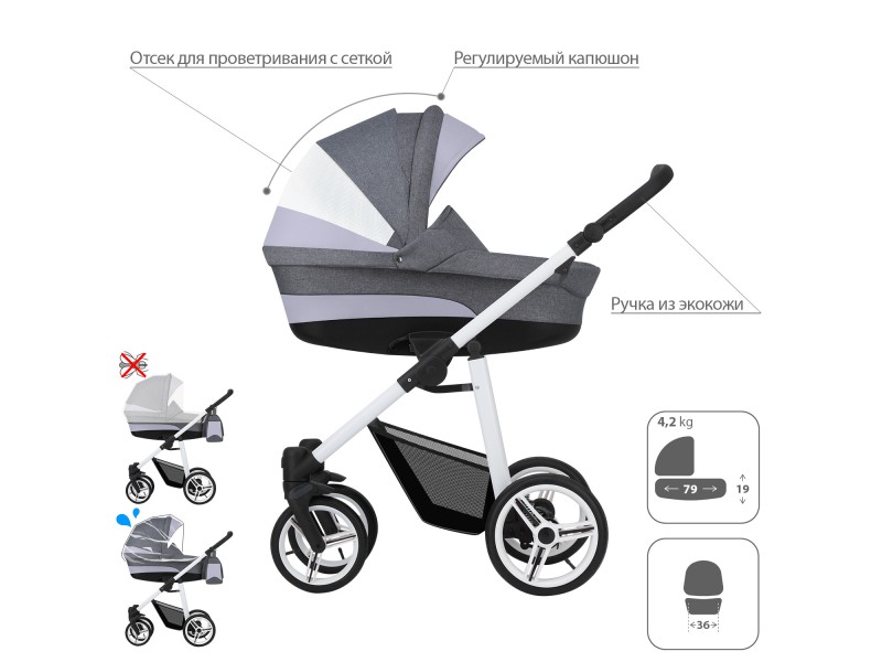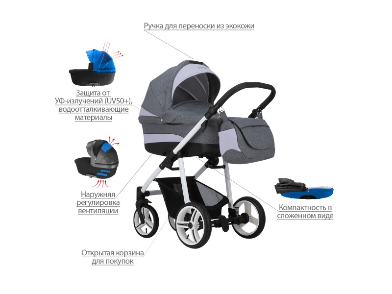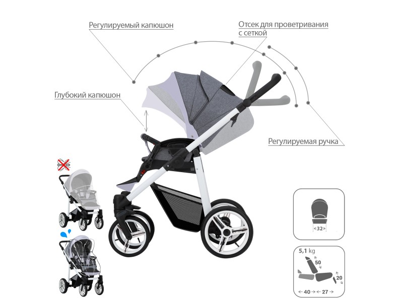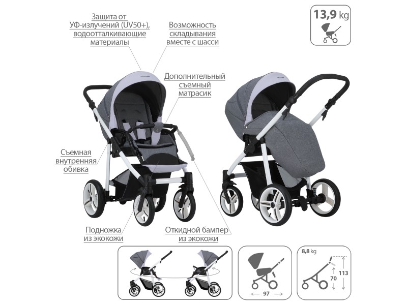 Обивка коляски: водоотталкивающая, съемная, с УФ-защитой 50+.