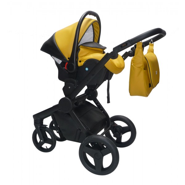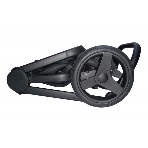 Ультрамодное шасси складывается невероятно компактно. Оно легкое, маневренное и за счет небольшой колесной базы проедет даже в самый узкий лифт или небольшой проем. При этом коляска смотрится очень стильной и легкой. Гелевые колеса новейшего поколения прекрасно и бесшумно справляются с любыми дорогами, не тревожа сон ребенка.