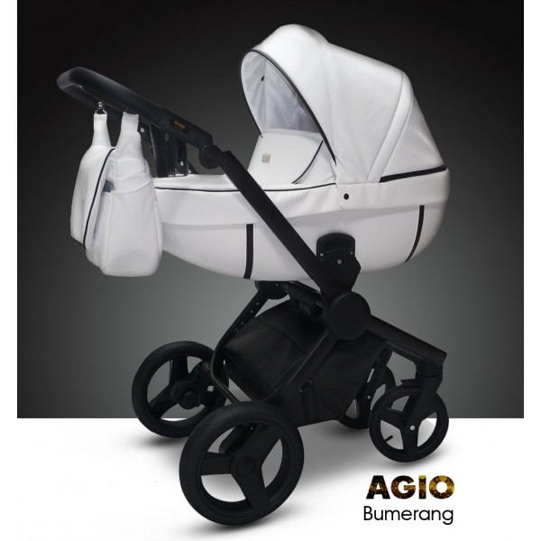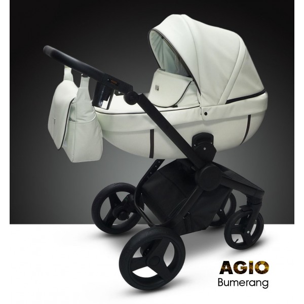 Детская коляска AGIO Bumerang 3 в 1 (аджио бумеранг) - коляска премиум класса для самых избирательных родителей. Модель рассчитана для детей с рождения до 3-4 лет и отличается высоким качеством и невероятным дизайном. Коляска полностью выполнена из мягкой, плотной эко кожи, с которой ни чего не случится от солнца, она не треснет на морозе и будет долго сохранять свой первоначальный вид. За счет такой обивки вы сможете гулять при любой погоде, не переживая за комфорт ребенка.