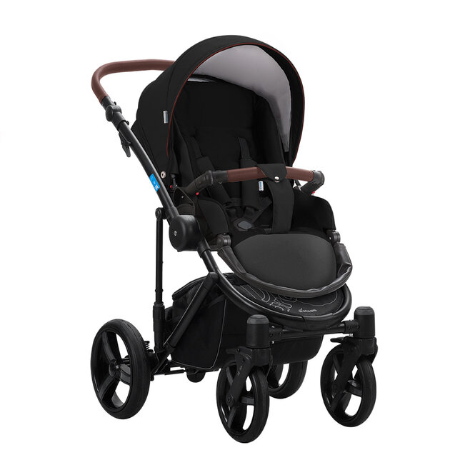 Для комфортных прогулок Bartolo prima оснащена большими гелевыми колесами с двойной амортизацией. Одна амортизация пружинная на колесах. Вторая амортизация - регулируемая на шасси коляски. Вы сможете сделать ход коляски пожестче или, наоборот, что бы колясочка легко покачивалась на дороге.