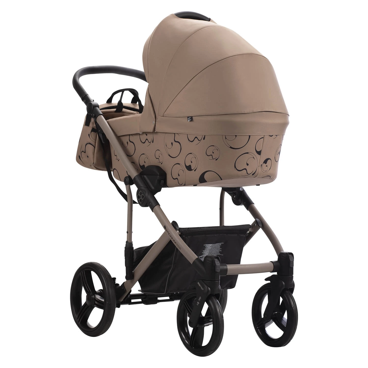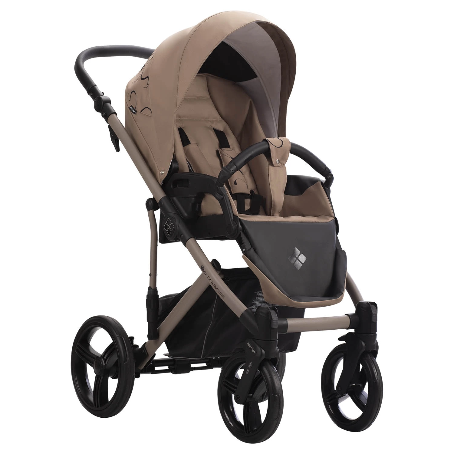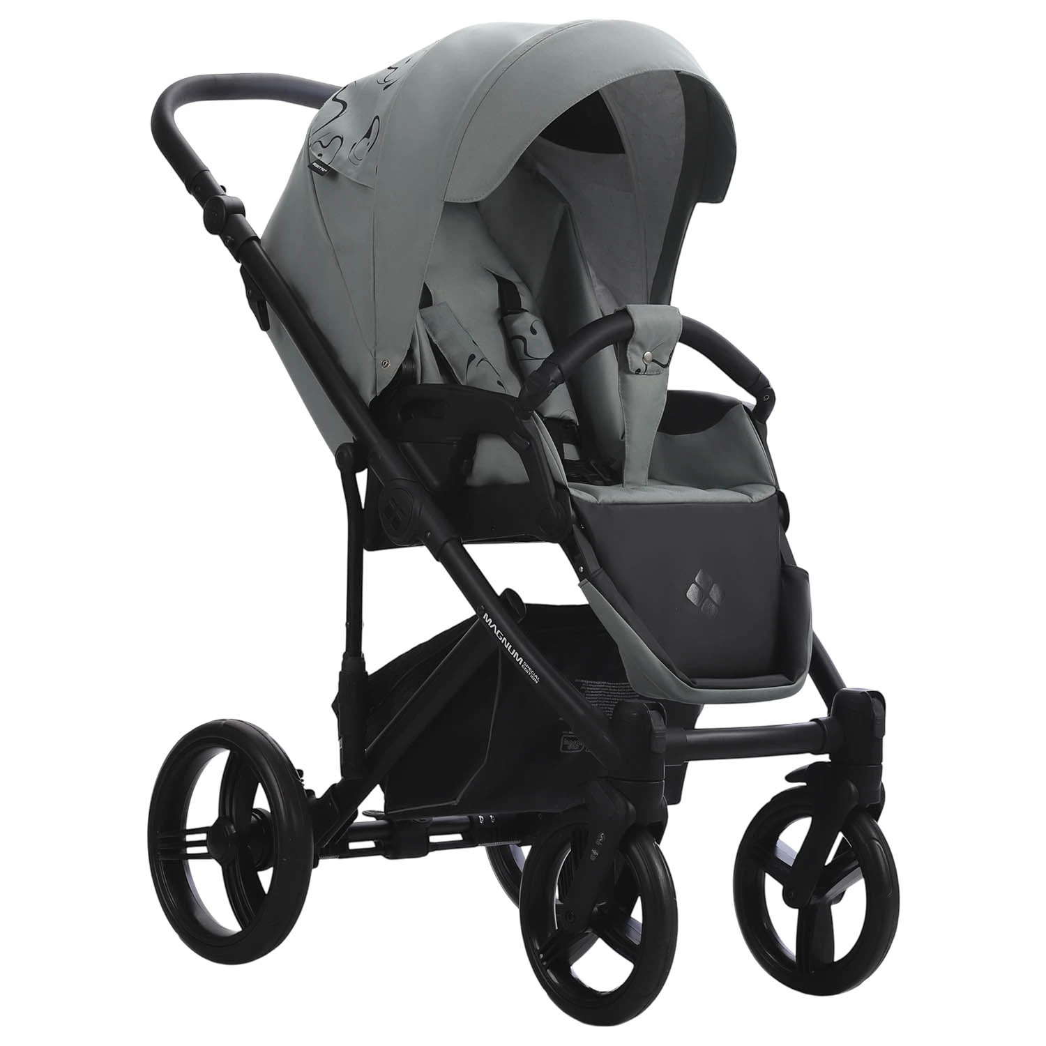 Коляска MAGNUM LIGHT SE 2в1 состоит из 2 съемных модулей. Люлька для новорожденного предусмотрена для ребенка с рождения до 9 кг. Как было написано выше, люлька выполнена из высокотехнологичных материалов, которые поддерживают комфортную температуру для ребенка в любую погоду. Внешняя обивка коляски -высококачественная ткань с водоотталкивающими свойствами и защитой от УФ лучей. Внутренняя обивка, с которой непосредственно контактирует ребенок, выполнена из натуральных дышащих гипоаллергенных тканей, которые снимаются для стирки. Так же предусмотрен качественный матрасик для новорожденного ребенка. Для прогулок в холодное время года предусмотрен большой капюшон, накидка на люльку с дополнительным бортиком для защиты от ветра и осадков. В теплое время года в капюшоне открывается вентиляционная секция. Так же в капюшоне предусмотрена ручка, что бы удобно снимать люльку с рамы и переносить вместе с ребенком.