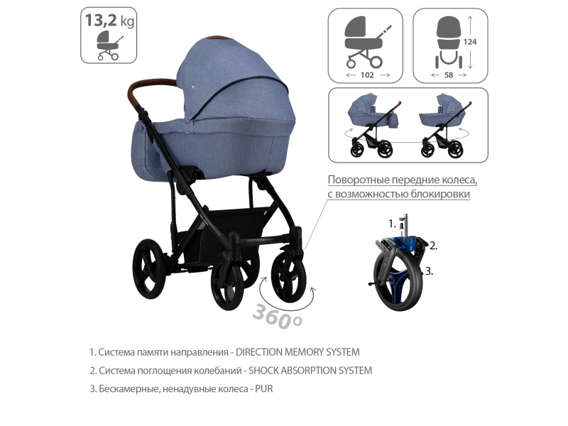 - Вес коляски с люлькой 13,2 кг