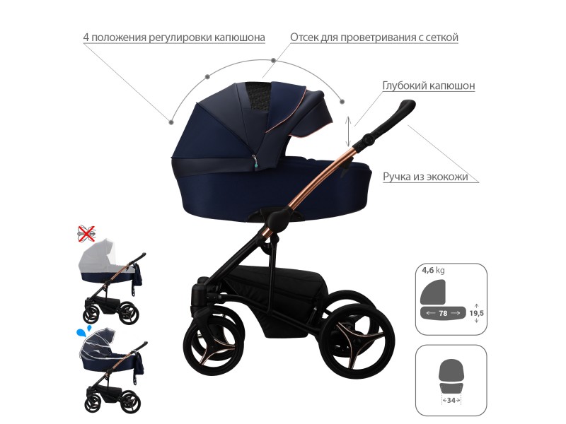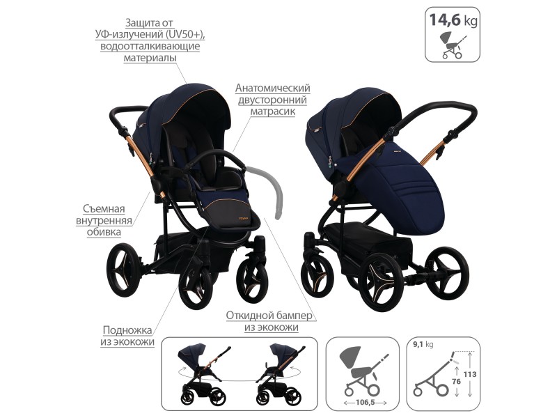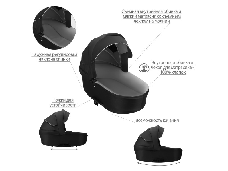 Обивка коляски: водоотталкивающая, съемная, с УФ-защитой 50+.