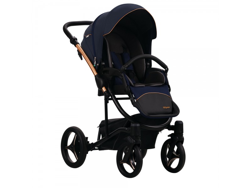 Bebetto Torino Si 2 в 1 (бебетто торино си) -эксклюзивная коляска с рождения до 3-4 лет. Коляска выполнена с интересным сочетанием ткани и эко кожи в черном цвете, вышивки, а рама и колеса выполнены с золотыми вставками. У коляски настолько не обычный яркий дизайн, что вы не останетесь незаметны во время прогулки.