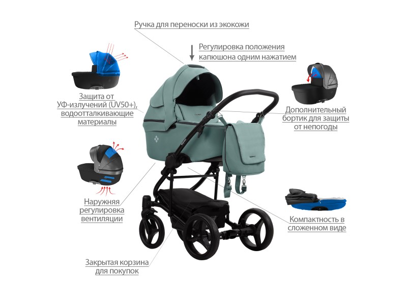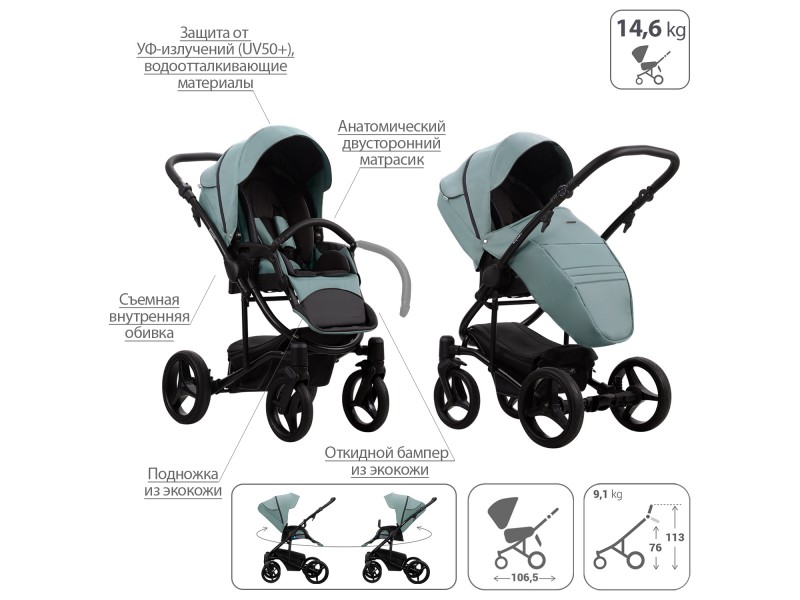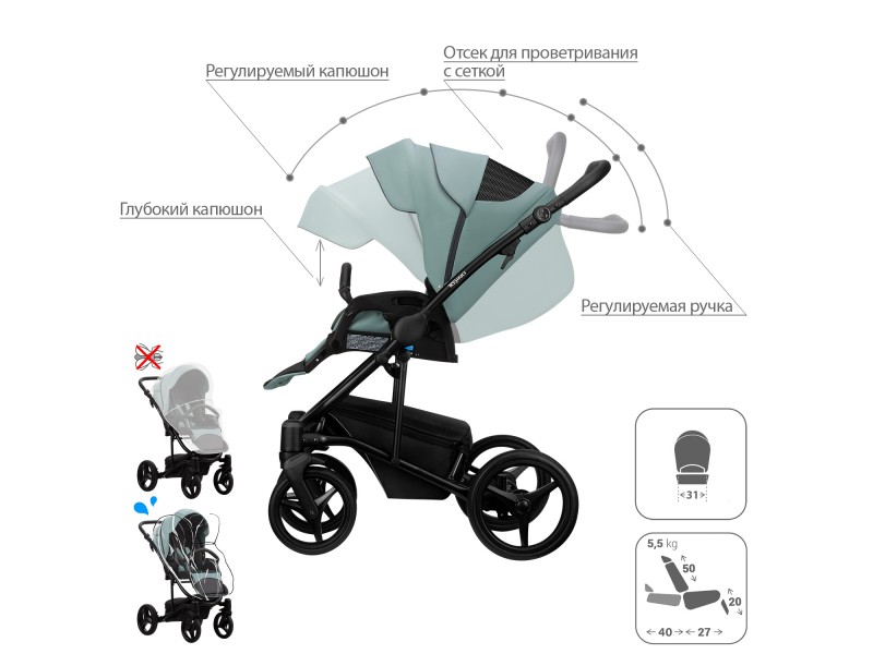 Обивка коляски: водоотталкивающая, съемная, с УФ-защитой 50+.