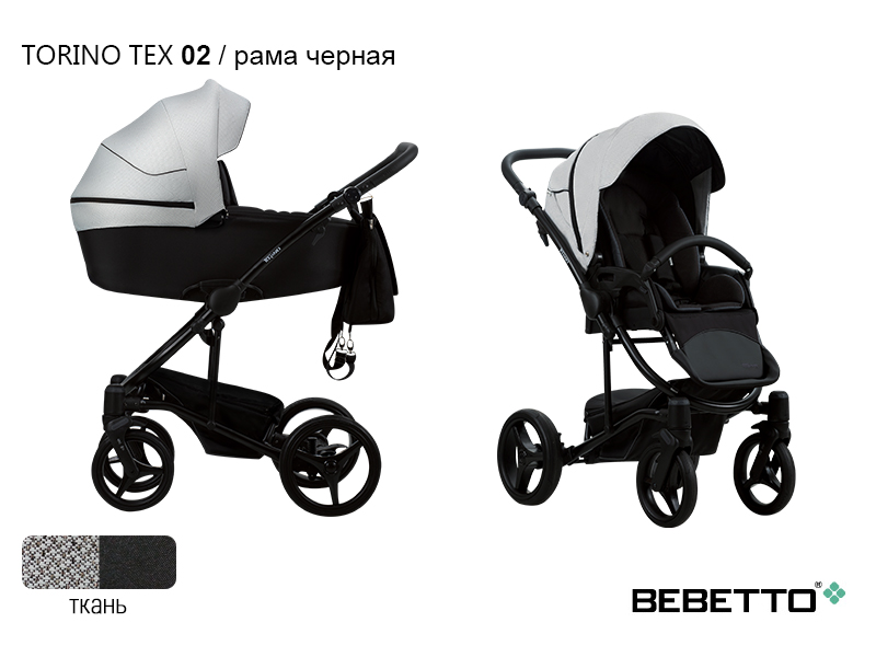 Детская коляска Bebetto Torino TEX 3 в 1 (Бебетто Торино Текс) - стильна коляска, выделяющаяся изысканным дизайном и повышенным комфортом для ребенка с 0-3 лет. Пластиковое дно люльки округленной формы, сочетание двух расцветок фактурной ткани и элегантная конструкция придают ей неповторимый внешний вид. Также, к неоспоримым преимуществам новой модели можно отнести инновационную систему снятия прогулочного блока и бампера. А регулируемая по объему сумка-рюкзак для мамы и крепление чехла люльки к спальному блоку с помощью молнии станут приятным дополнением ко всему вышеперечисленному. Torino TEX – это удобство, красота и функциональность, которые по достоинству оцените Вы и Ваш ребенок.