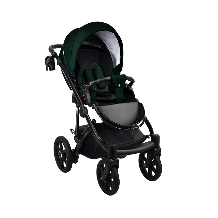 - Любые дорожные неровности коляска преодолевает без проблем благодаря двойной системе амортизации, а также системе «антишок», установленной на передних колесах.
