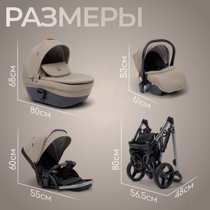 Коляска состоит из 3 съемных модулей: теплая просторная люлька для новорожденного, очень удобный прогулочный блок, автокресло с наклоном спинки. Каждый модуль надежно встает на раму коляски, позволяя ребенку максимально комфортно чувствовать себя во время прогулок и поездок.