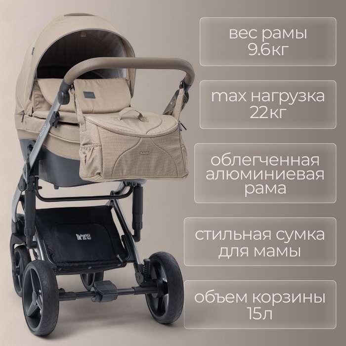 Легкая и прочная рама из облегченного алюминия обеспечивает надежность и маневренность коляски, делая прогулки легкими и приятными. Изысканные линии и благородная цветовая гамма позволяют подобрать коляску, которая идеально впишется в ваш образ и подчеркнет индивидуальность. Безупречная фурнитура придает коляске завершенный и роскошный вид, демонстрируя внимание к деталям.