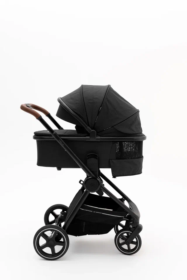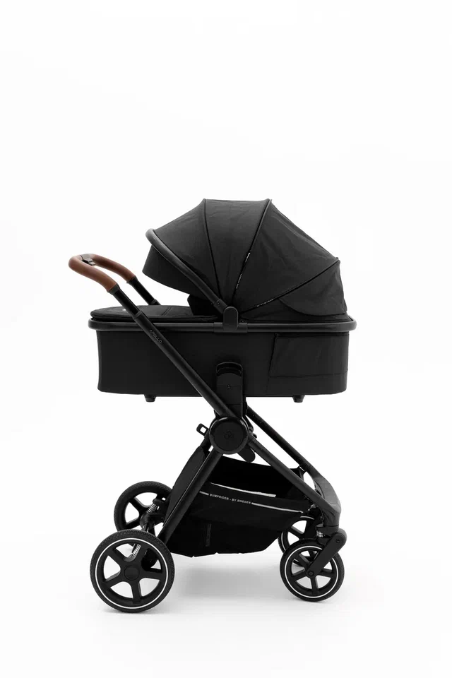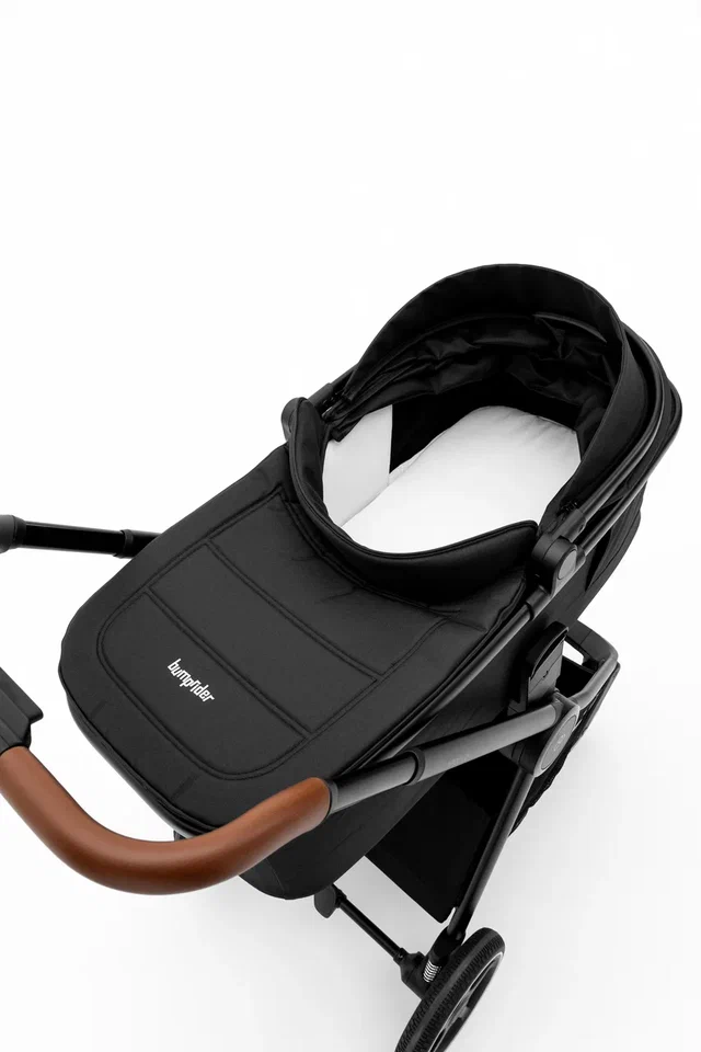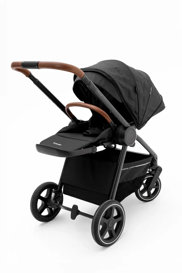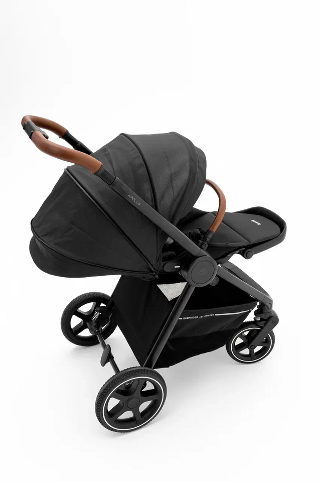 Bumprider Apollo имеет большие непрокалываемые колеса, телескопическую ручку и багажную корзину, в которой найдется место и для покупок, и для необходимых на прогулке вещей. При помощи адаптеров (входят в комплект) на шасси можно устанавливать автокресло группы 0+.