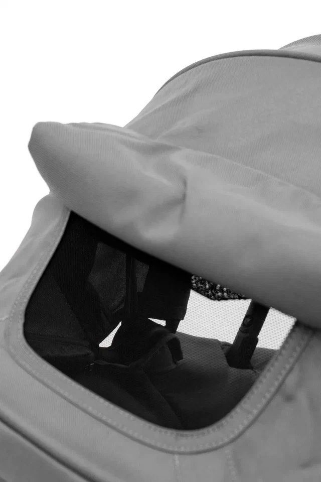 - Объемный капюшон с дополнительной секцией и сетчатым окошком