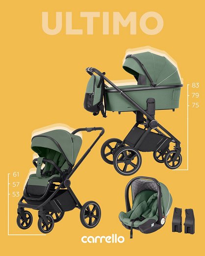 Детская коляска Carrello Ultimo CRL-6519 3в1 (каррелло ультимо) - коляска, в которой высоту люльки и прогулочного блока можно регулировать самим! Теперь высоту люльки можно подстроить под рост родителей, а прогулочный блок поднять повыше от пыли, пока малыш маленький, а в дальнейшем сделать пониже, чтобы ребенок сам залазил и слазил с коляски.