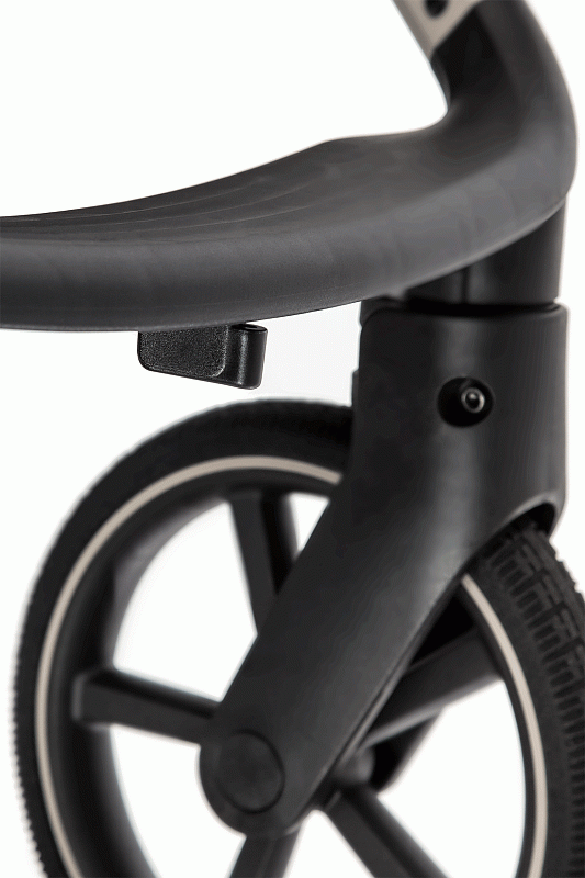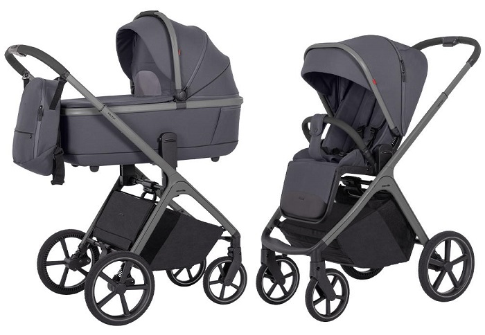 Коляска состоит из двух модульных блоков: люлька для новорожденного, реверсивный прогулочный блок и алюминиевой рамы с колесами большого диаметра.