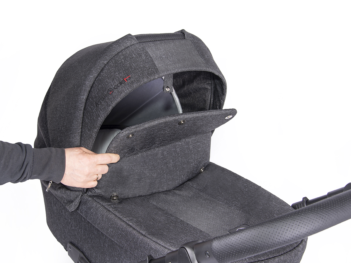 - На люльке имеется дополнительный отворот с окошком, защищающий малыша от ветра или дождя;