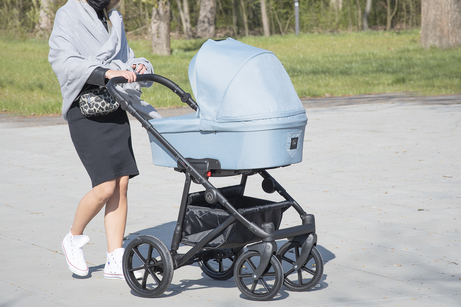 - Кожаная ручка регулируется по высоте под рост родителя;