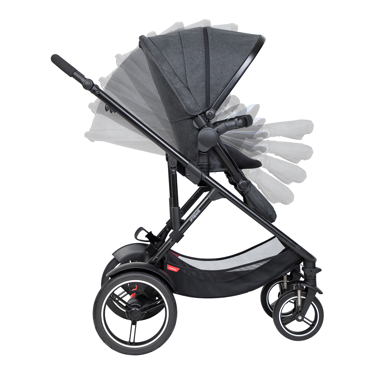 Пять положений угла наклона прогулочного сидения от вертикального до горизонтального для комфортного сна малыша. Наклонить спинку можно одной рукой.