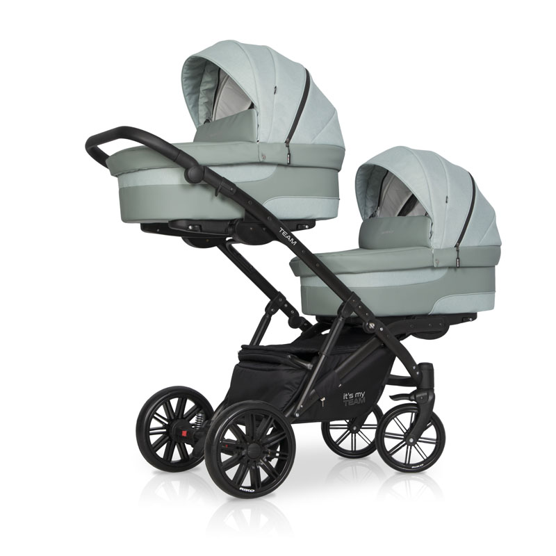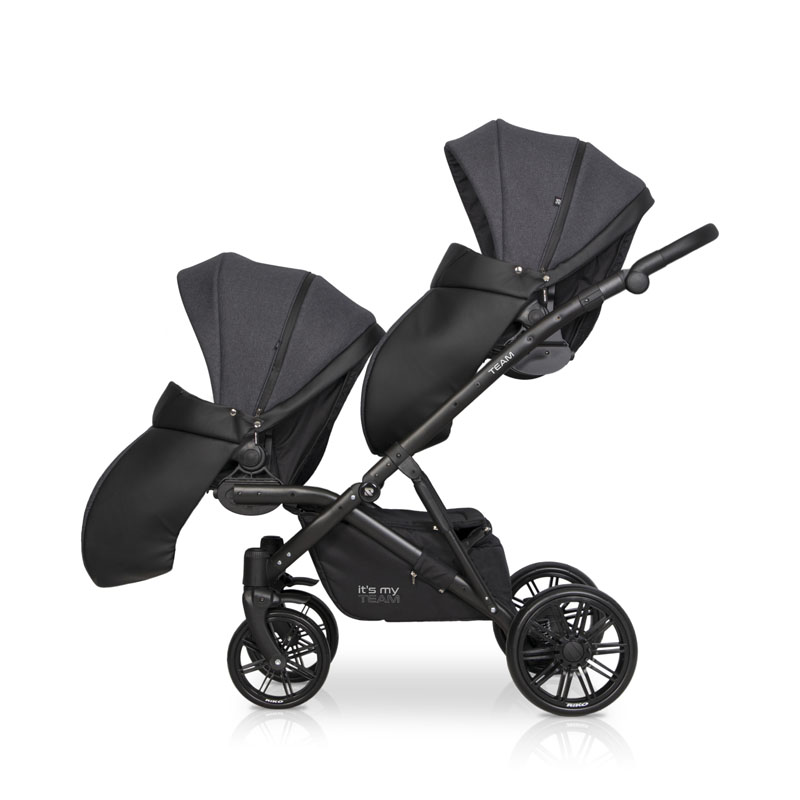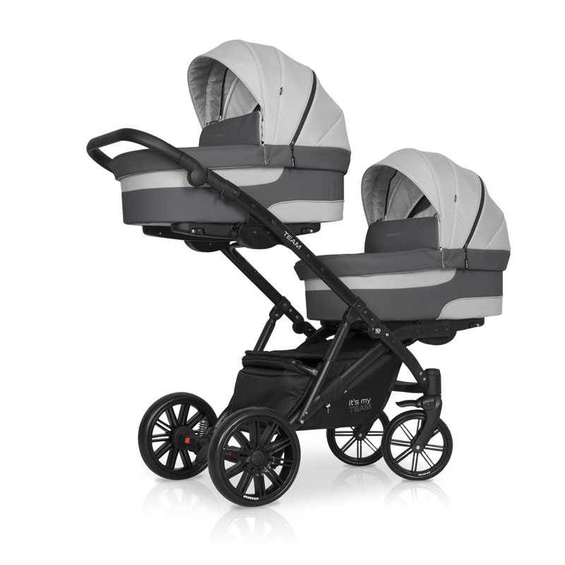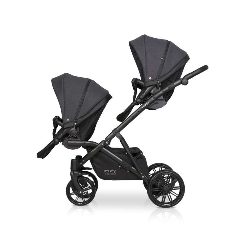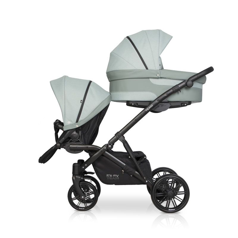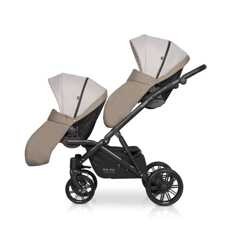 Коляска для двойни Riko Team 2 в 1 (Рико Теам) - обновленный вариант очень удобной, а главное, компактной коляски для двоих детей с рождения до 3-4 лет. Это коляска представлена на компактной раме, специально усиленной для использования сразу для двоих детей. Такая рама позволяет молодой маме без труда заезжать на любые пандусы, легко проезжать в подъезде и помещаться в лифт. Блоки расположены высоко от земли, а между блоками есть удобное расстояние для контроля за малышами. В сложенном виде рама очень компактно и практически не отличается от обычной стандартной коляски для одного ребенка.