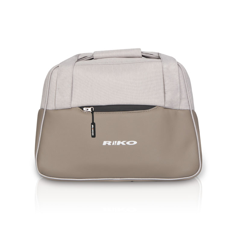 - Коляска выполнена из имитации льна и дополнена вставками из экокожи