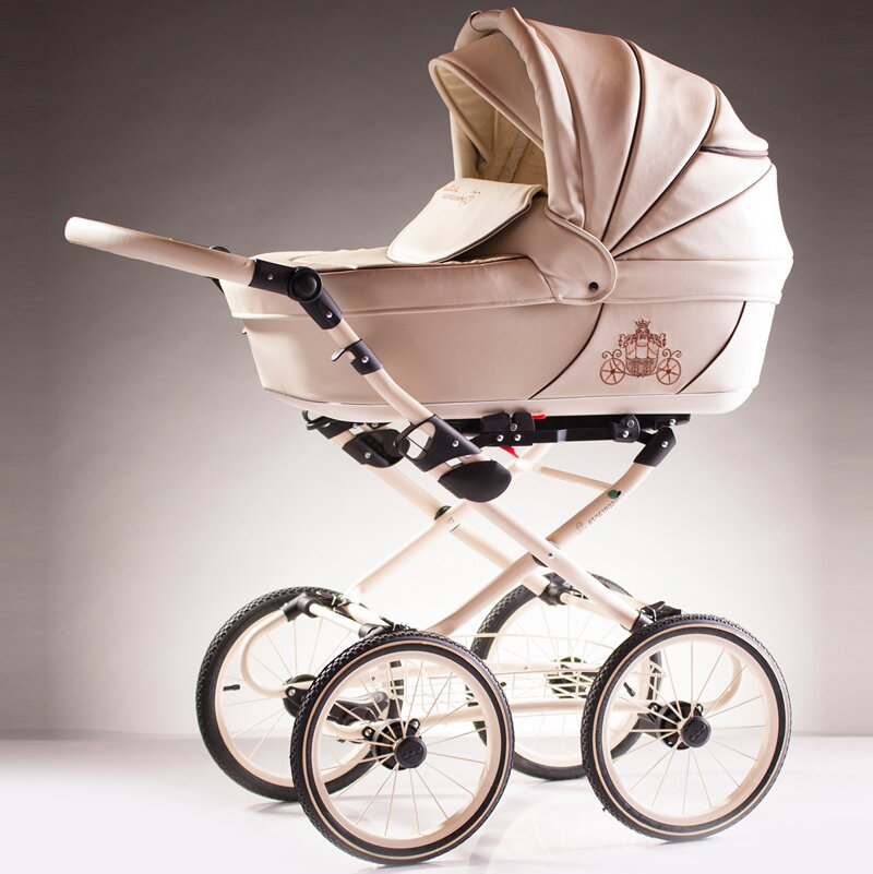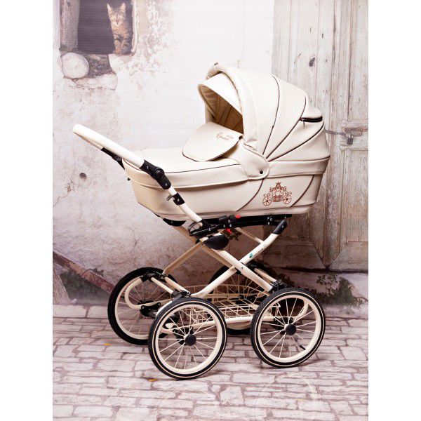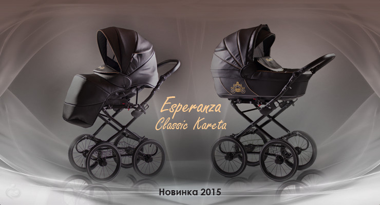 Детская коляска Esperanza Classic Kareta 2 в 1 (эсперанза классик карета) – по-настоящему роскошный транспорт для вашего ребенка. Изысканная коляска из эко кожи с вышивкой кареты на бортике. Большие надувные колеса на классической раме подчеркивают статусность коляски. Для новорожденного малыша предусмотрена большая и вместительная люлька 78 см в длину (внутренние размеры), с хлопковой обивкой и кокосовым матрасиком. Такая люлька укроет малыша от любой непогоды, ветра или снега. Прогулочный блок, как и люлька, невероятно продуман и удобен для ребенка от 6 месяцев до 3-4 лет.