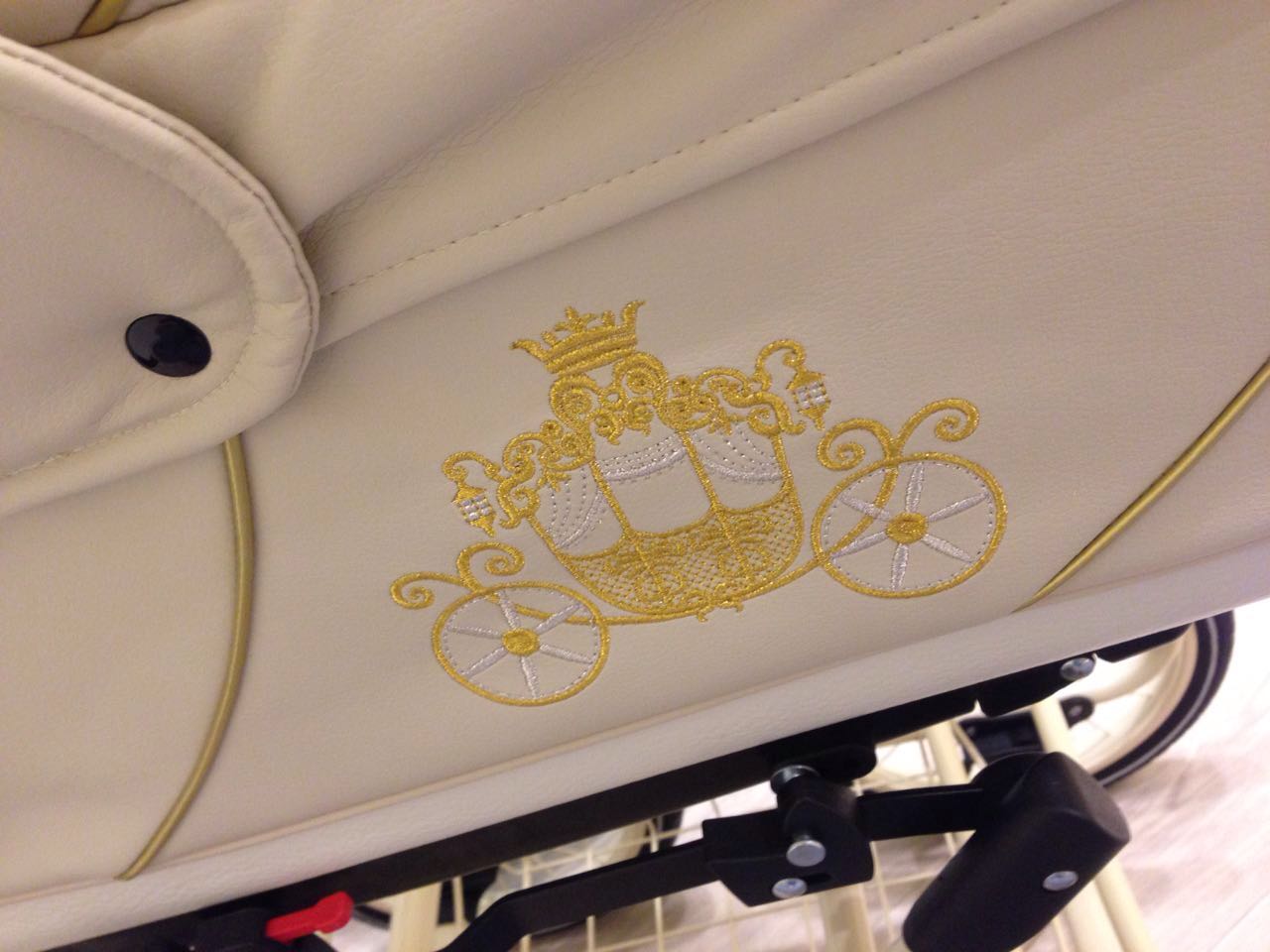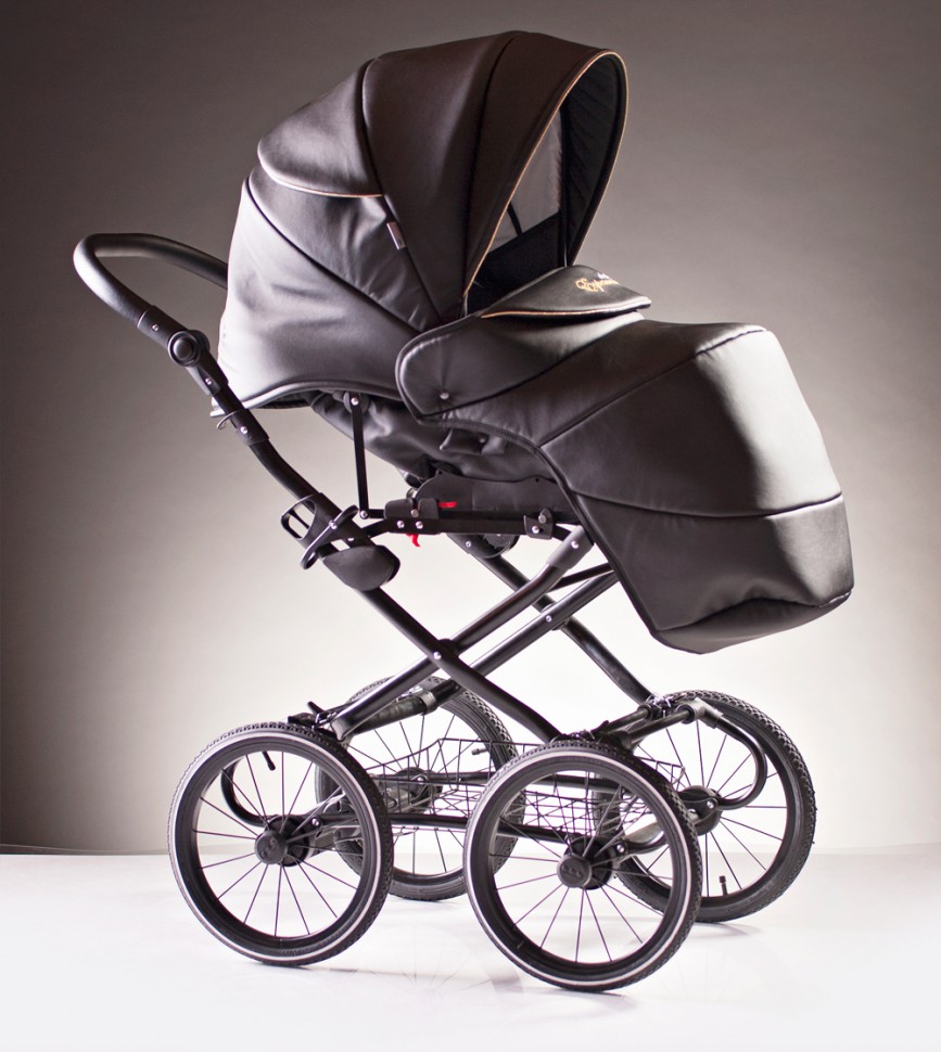 - Ручка для родителей из эко кожи регулируется по высоте и выполнена в цвет коляски.