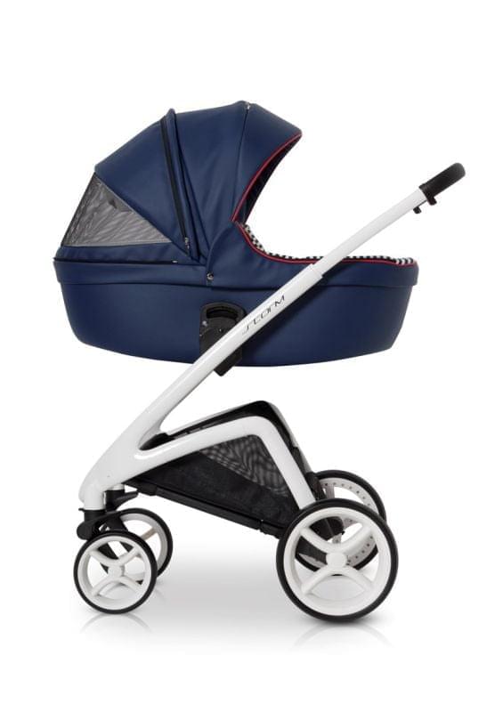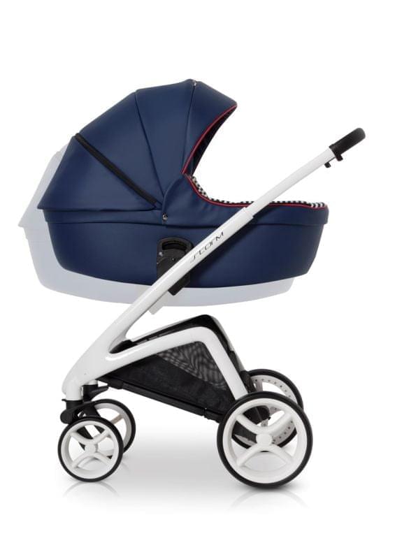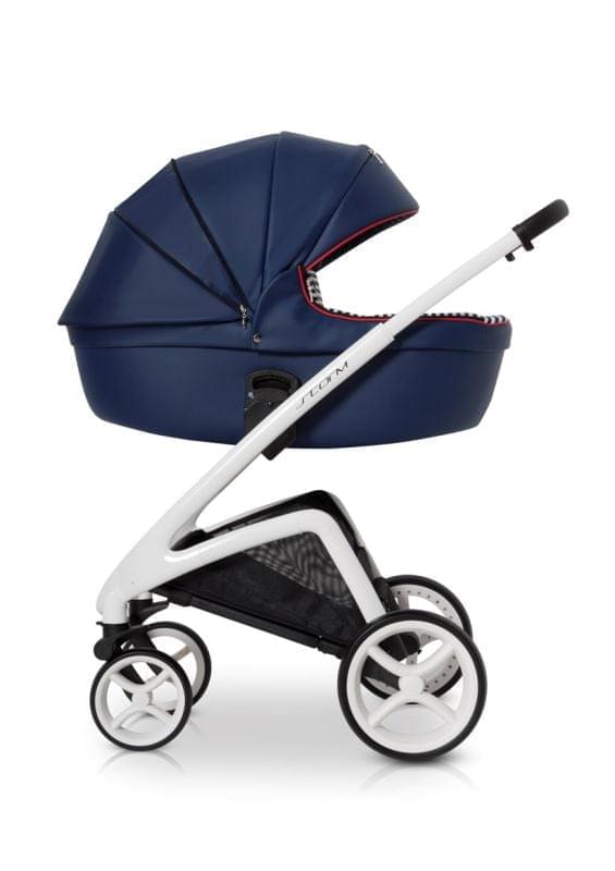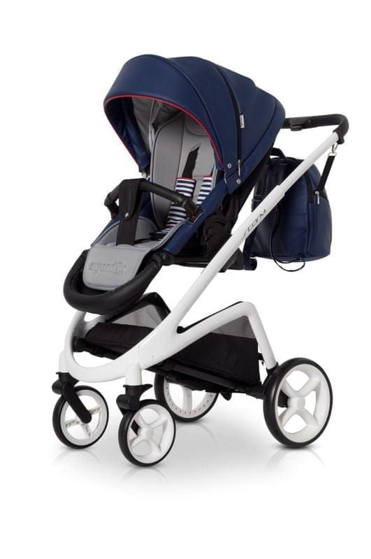 Коляска предназначена как для новорожденного, так и ребенка до 3-х лет. Люлька и прогулочный блок регулируются на раме по высоте. Люлька коляски, накидка и корзина для покупок обтянуты качественной и безопасной для ребенка водонепроницаемой тканью. Двойная амортизация, система Anti-Shok, резиновые колеса с шариковыми подшипниками делают движение коляски мягким и плавным. Уникальный дизайн шасси, регулировка блоков по высоте на раме, телескопическая родительская ручка.