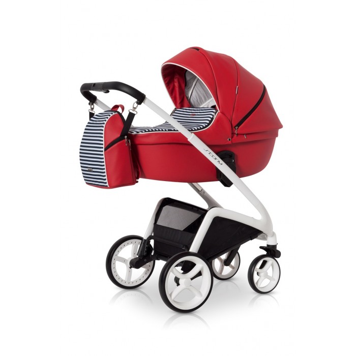 В комплекте: чехол от дождя, москитная сетка, сумка для мамы, матрасик в люльку, съемная закрытая сумка для покупок.