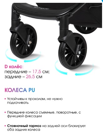 - D колёс: передние – 17,5 см; задние – 26,5 см.