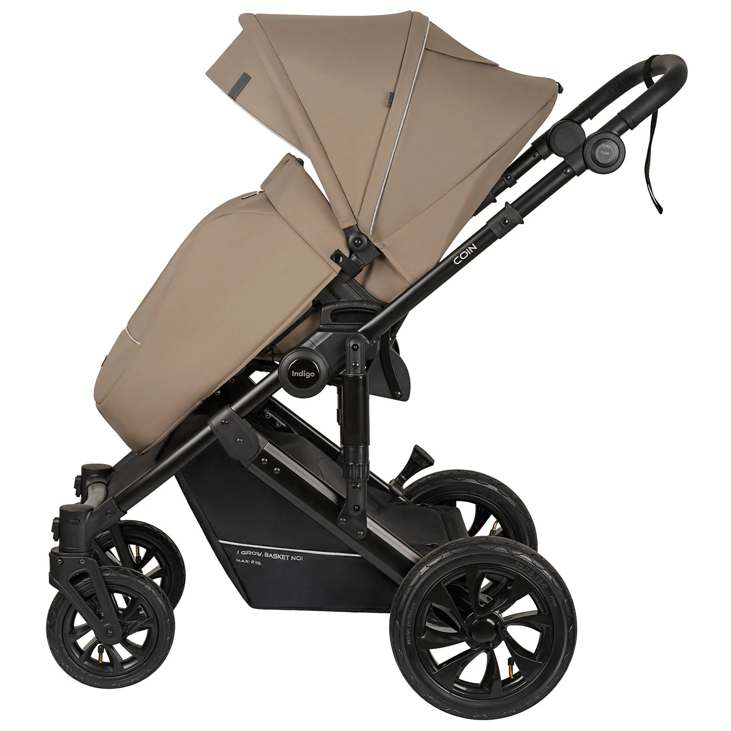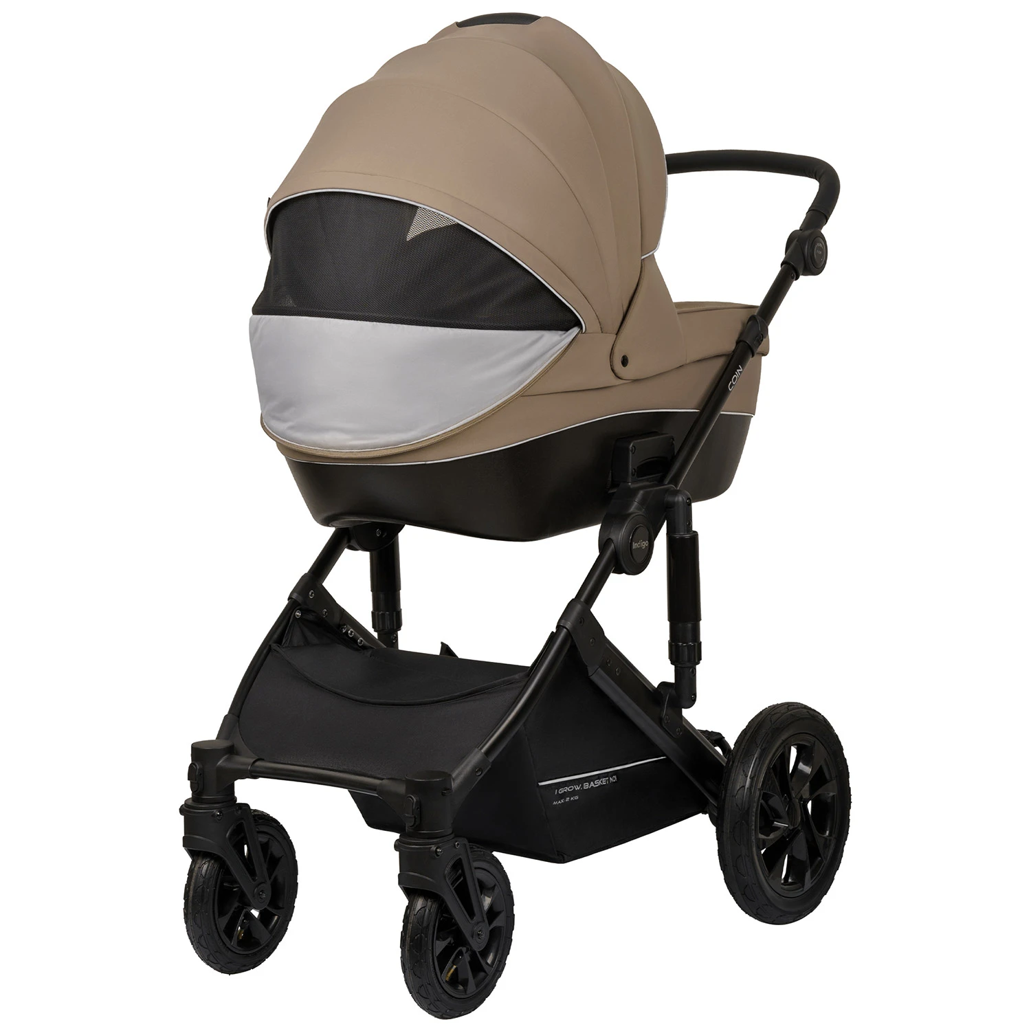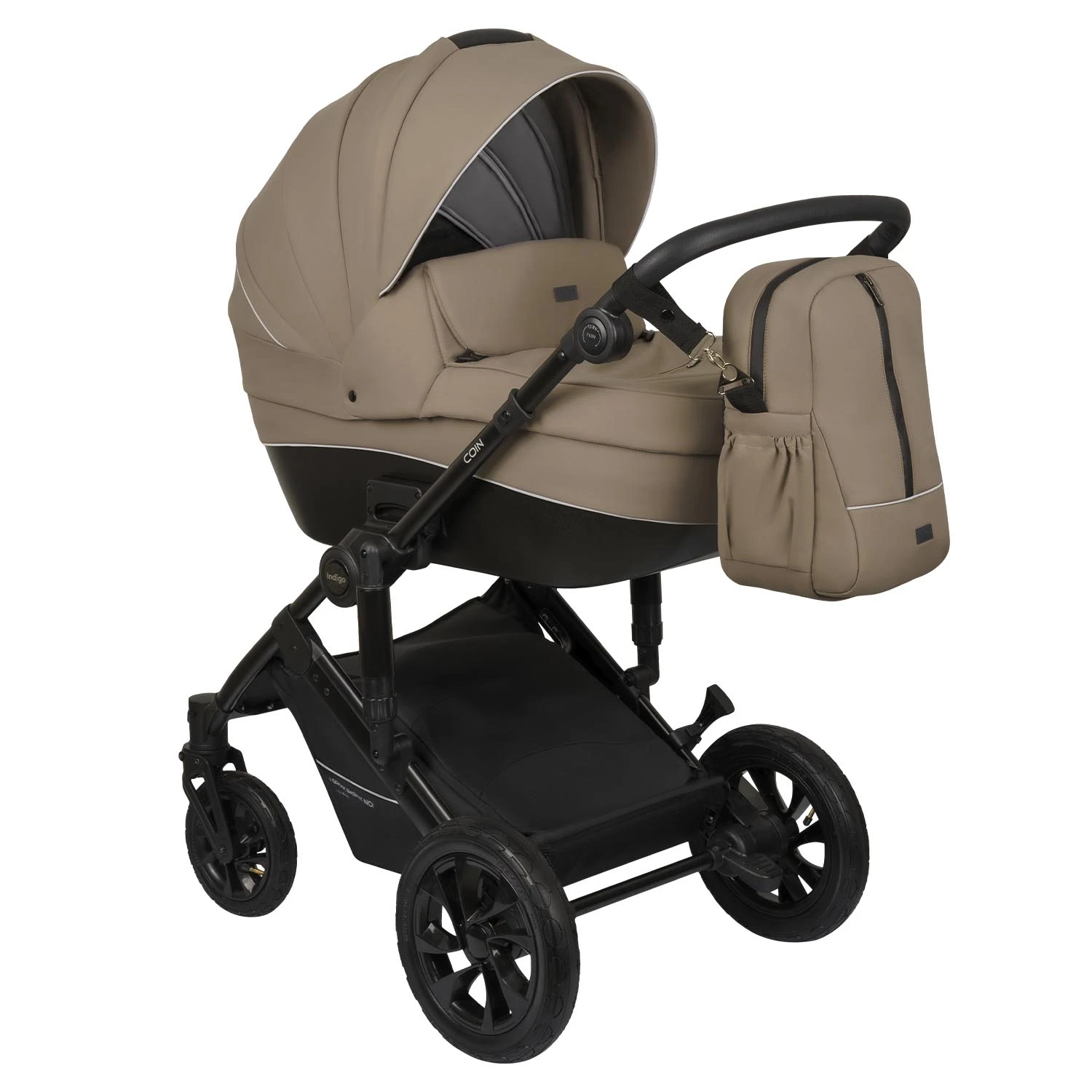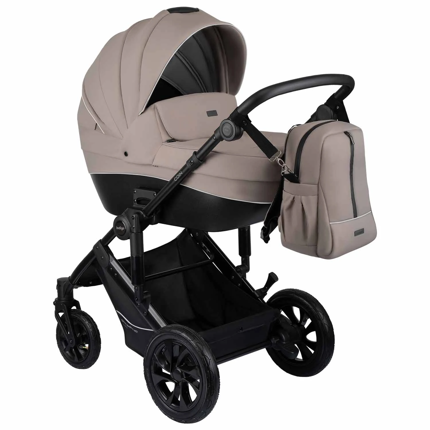 Детская коляска Indigo COIN 2в1 (Индиго коин) - современная коляска для ребенка с рождения до 4 лет с повышенной проходимостью и надувными колесами. Это классическая польская коляска с большой утепленной люлькой, реверсивным просторным прогулочным блоком и прекрасно подходящая для российского климата. В ней точно будет тепло зимой и комфортно летом, а ребенок будет надежно защищен от любой непогоды.