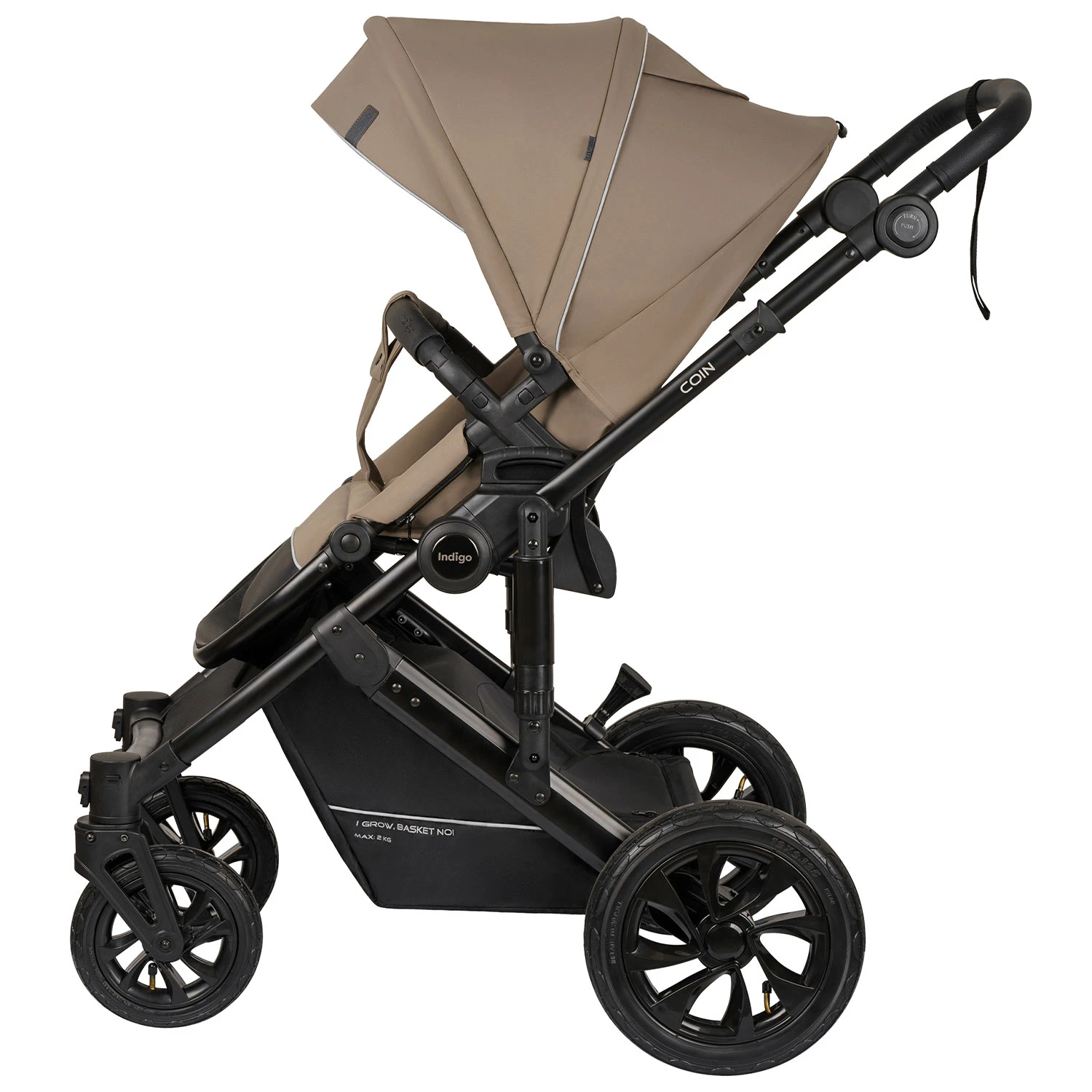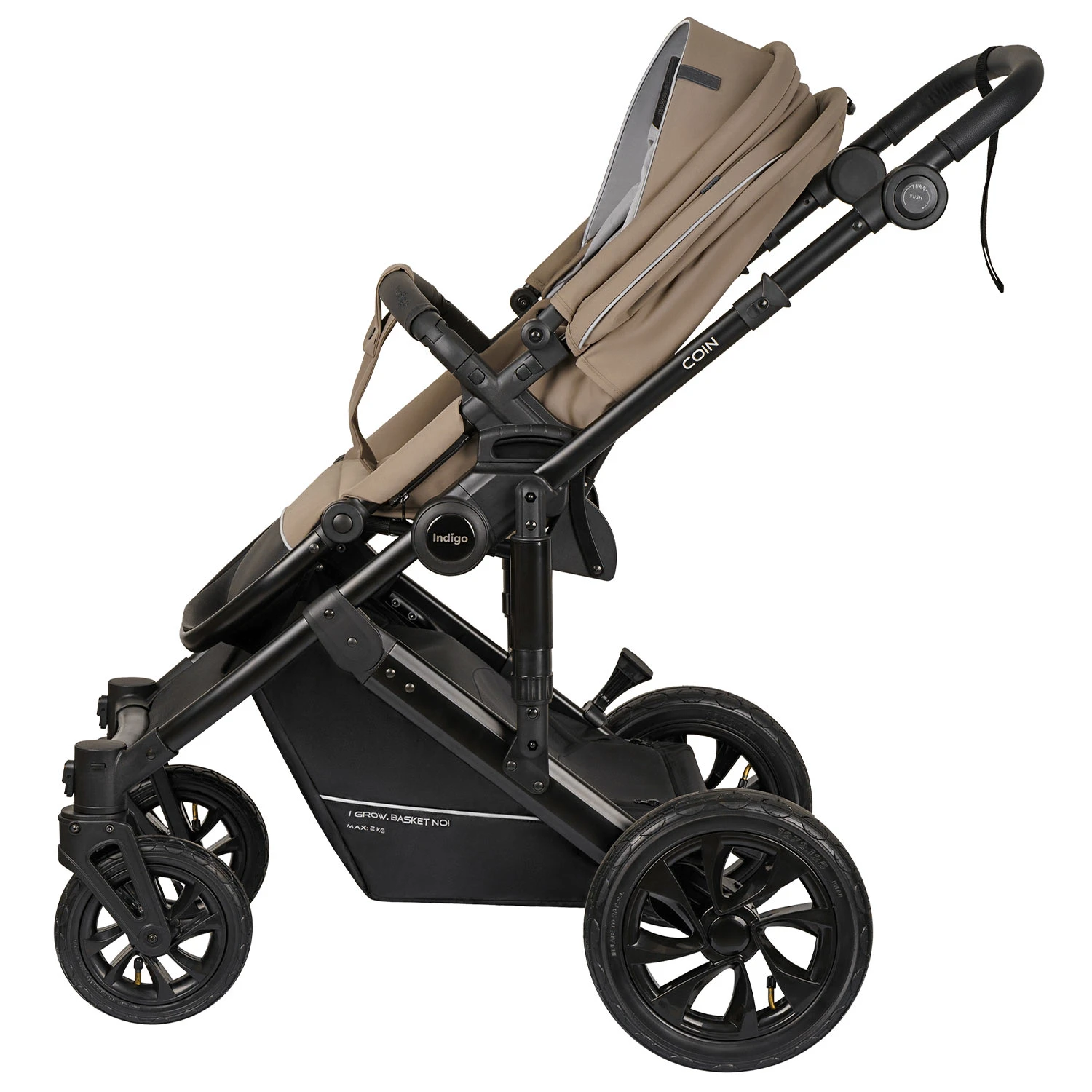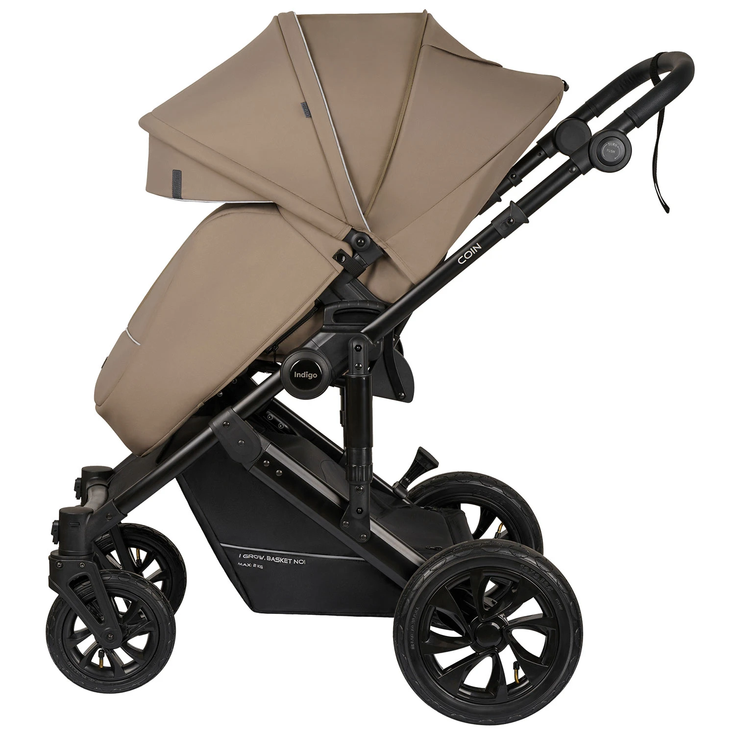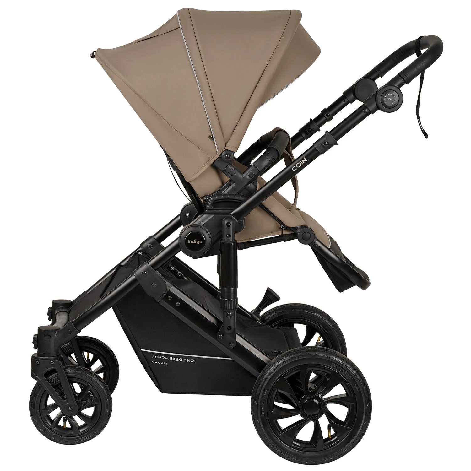 Детская коляска Indigo COIN 2в1 (Индиго коин) - современная коляска для ребенка с рождения до 4 лет с повышенной проходимостью и надувными колесами. Это классическая польская коляска с большой утепленной люлькой, реверсивным просторным прогулочным блоком и прекрасно подходящая для российского климата. В ней точно будет тепло зимой и комфортно летом, а ребенок будет надежно защищен от любой непогоды.