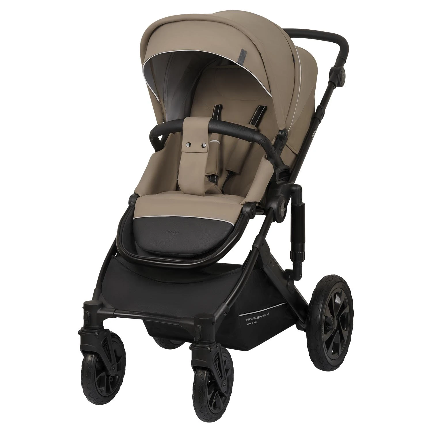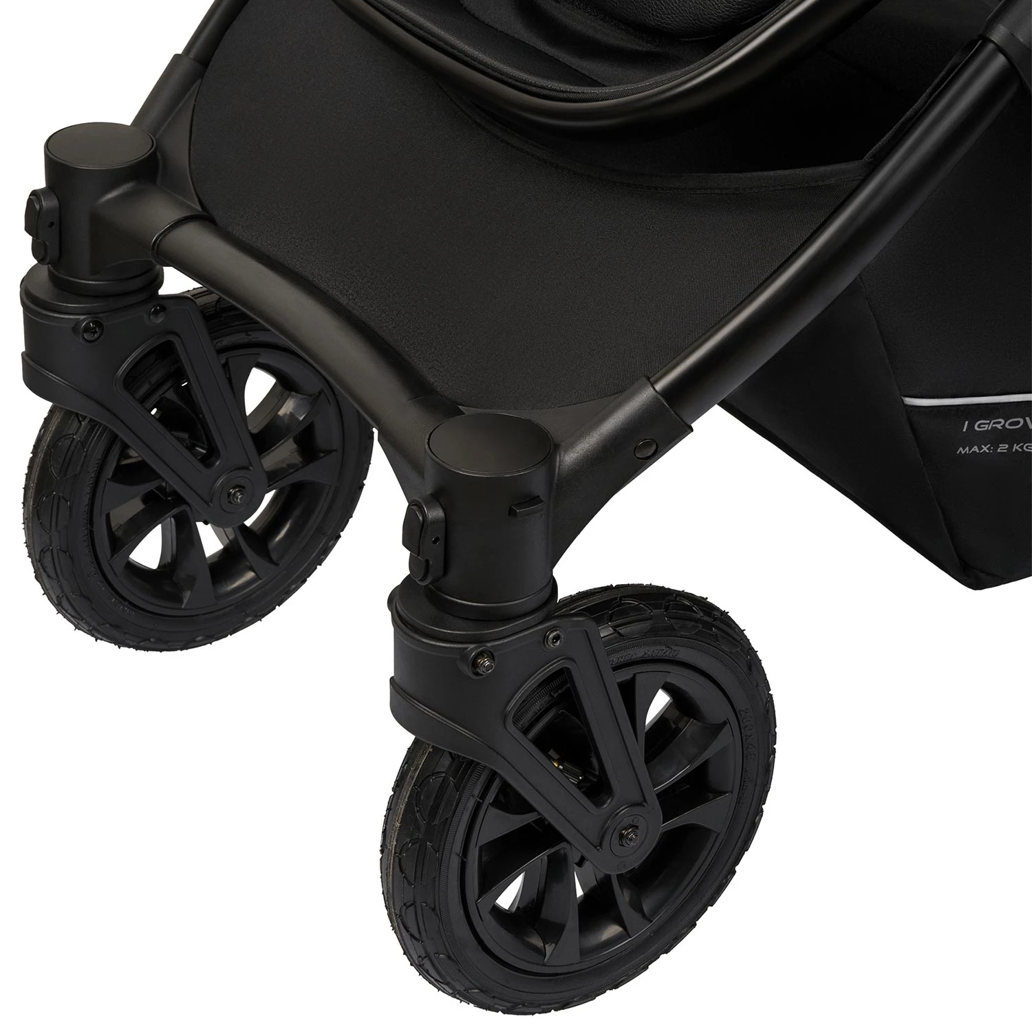 Настоящим украшение этой коляски является продуманная система амортизации с надувными колесами. Прекрасный мягкий ход независимо от качества дорог. Вы смело сможете гулять зимой не переживая, что не проедите через сугробы (не забудьте зафиксировать передние колеса в положение "только прямо"). Будете комфортно гулять в лесопарковой полосе, наслаждаясь природой и тихим ходом коляски. Ручка регулируется по высоте, настраиваясь под рост родителей. Большая открытая корзина под коляской вместит все необходимые для прогулки вещи.