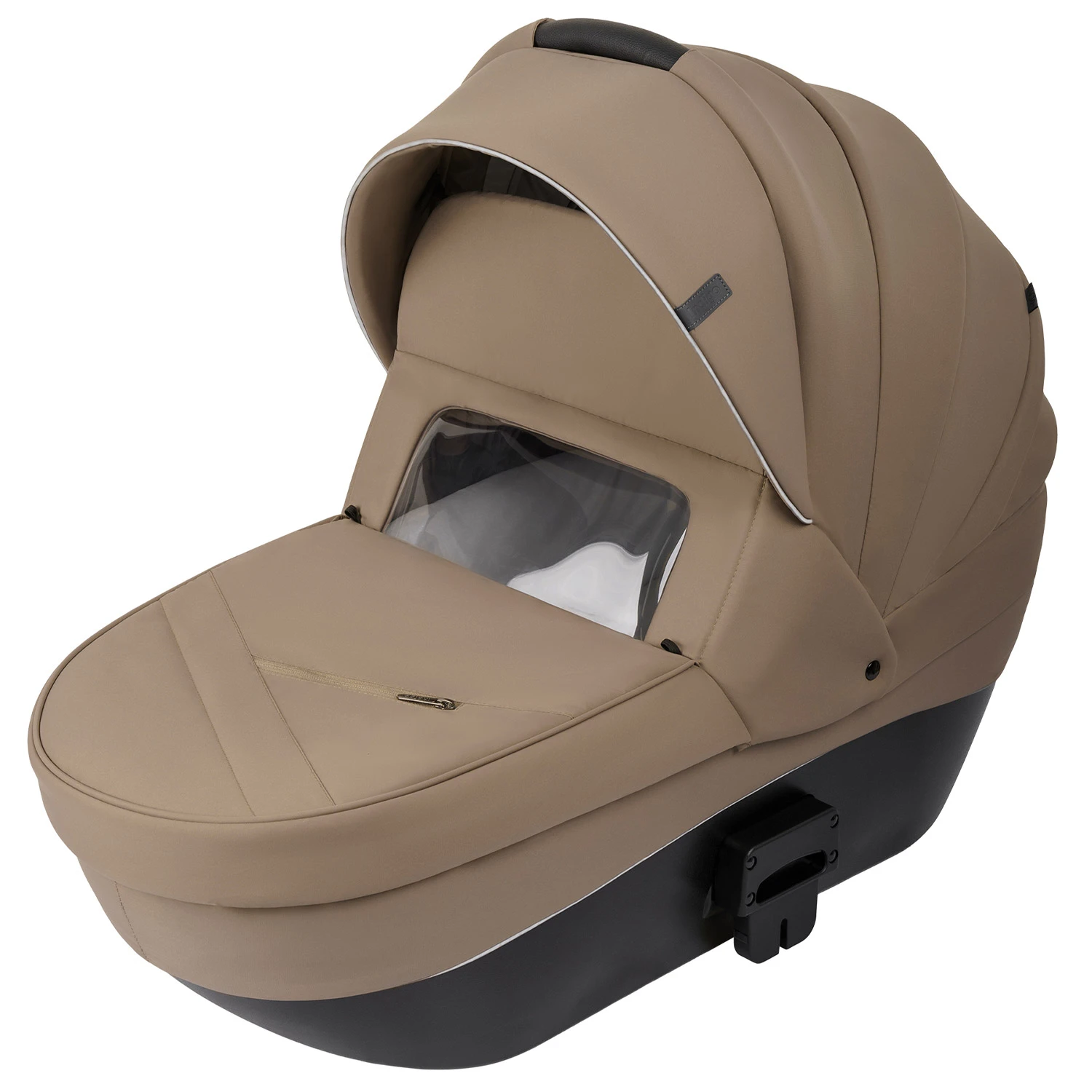 Коляска выполнена из плотной ткани с водо и ветрозащитой. Внутри люльки только 100% хлопковая обивка, которая легко снимается для стирки. Капюшон утеплен по всему периметру, а вентиляционное окошко для летних прогулок фиксируется на молнии. Каркасная литая люлька надежно защитит ребенка от любых внешних воздействий, например, дверь в коридоре, кто-то задел коляску во время прогулки и тд. Накидка на люльку имеет высокий отворот для защиты от ветра и осадков с удобным смотровым окошком для мамы. Люлька удобно снимается с шасси, а для переноски предусмотрена ручка на капюшоне.