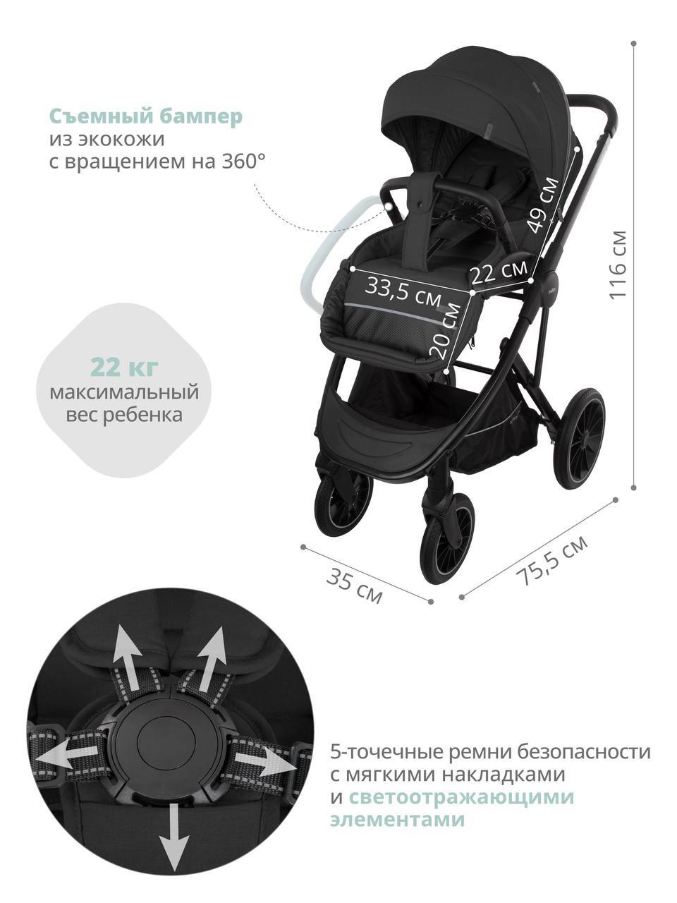 - пятиточечные ремни безопасности со светоотражателями и разделитель для ножек надежно зафиксируют кроху;