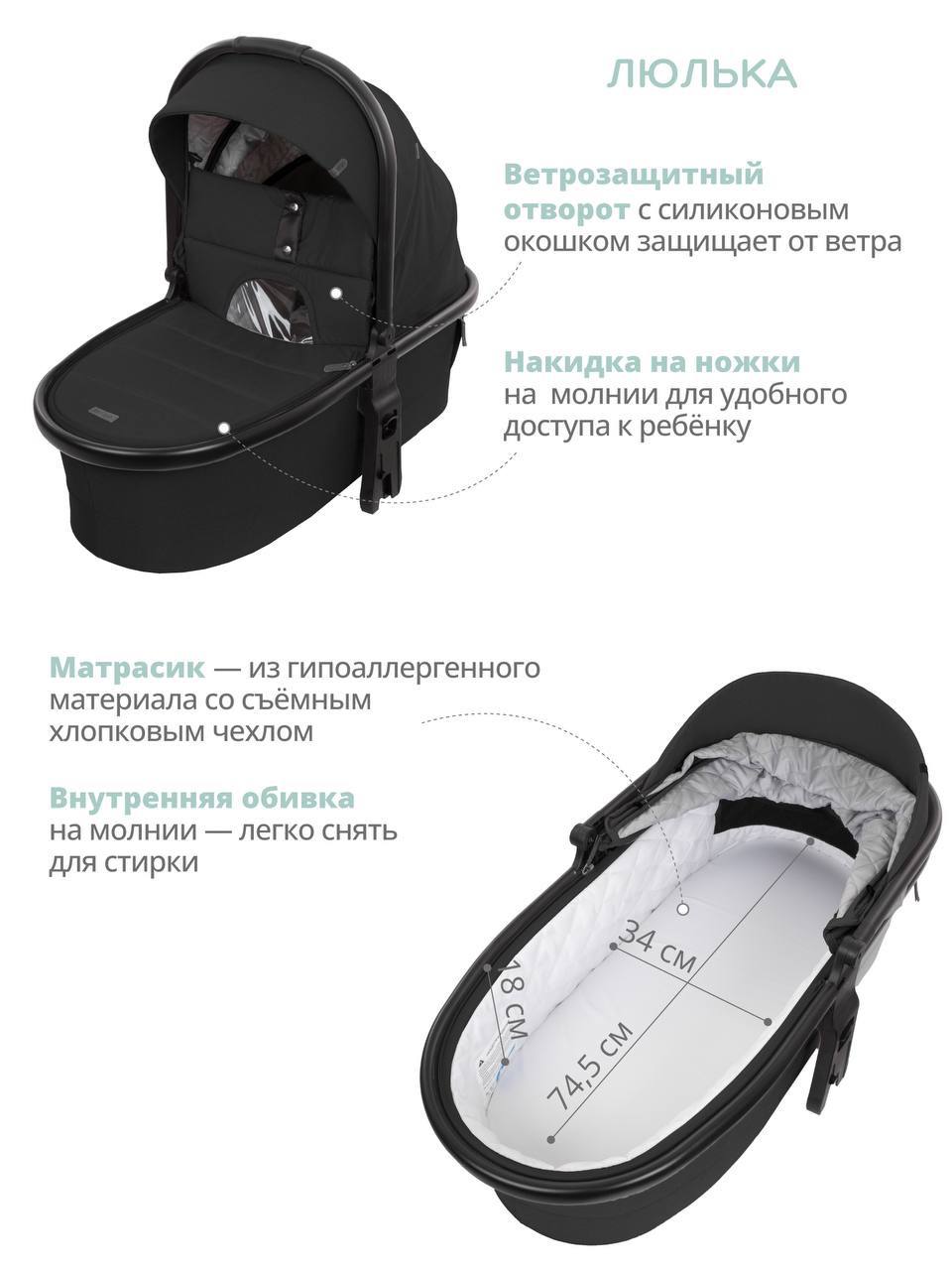 На обивке коляски и корзине предусмотрены светоотражающие элементы, которые сделают прогулку в темное время суток более безопасной.