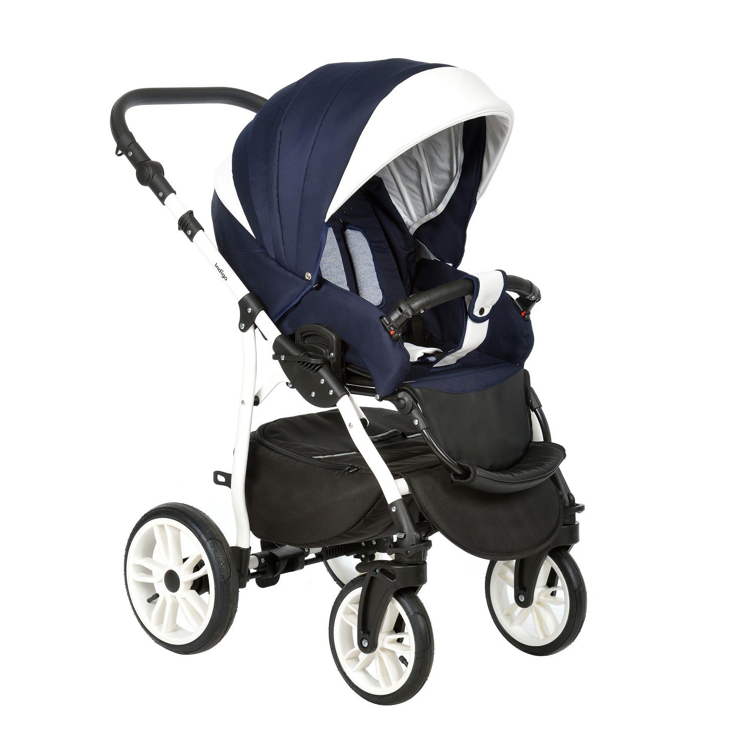 Коляска Indigo Indigo 2 в 1 (Индиго) - прекрасный вариант качественной и практичной коляски для ребенка с рождения. Вас ждет качественная коляска с обивкой из тканей разных фактур с элементами (вставками) из эко кожи. Классический дизайн коляски с округлым капюшоном, создает ощущение динамичности и законченности линий. Вставки из эко кожи подчеркивают дизайн модели и придают коляске элегантности и практичности. Модель оснащено легкой и надежной рамой с большими надувными колесами. Такая коляска, как настоящий "танк", справится с любым бездорожьем, ямами, снегом, кочками, оберегая ребенка от тряски и вибрации от дороги. Для удобства управления транспортом предусмотрена регулируемая по высоте ручка и передние поворотные колеса. В блокированном состоянии передние колеса едут только прямо, как простая классическая коляска, а при разблокировке колес коляска становится более маневренной, легко поворачивает, и управляется буквально одной рукой.