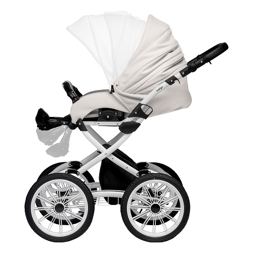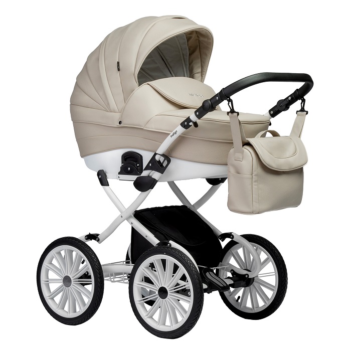 Коляска представлена на классической раме с большими надувными колесами. Такие колеса не только повышают проходимость коляски, но и смотрятся очень элегантно и красиво. Такая коляска подойдет для прогулок по любым дорогам, поэтому ее можно смело брать в лес, на дачу, отлично подойдет для регионов с плохими дорогами. Надувные колеса и мягкая амортизация сделают ход коляски бесшумным и плавным.