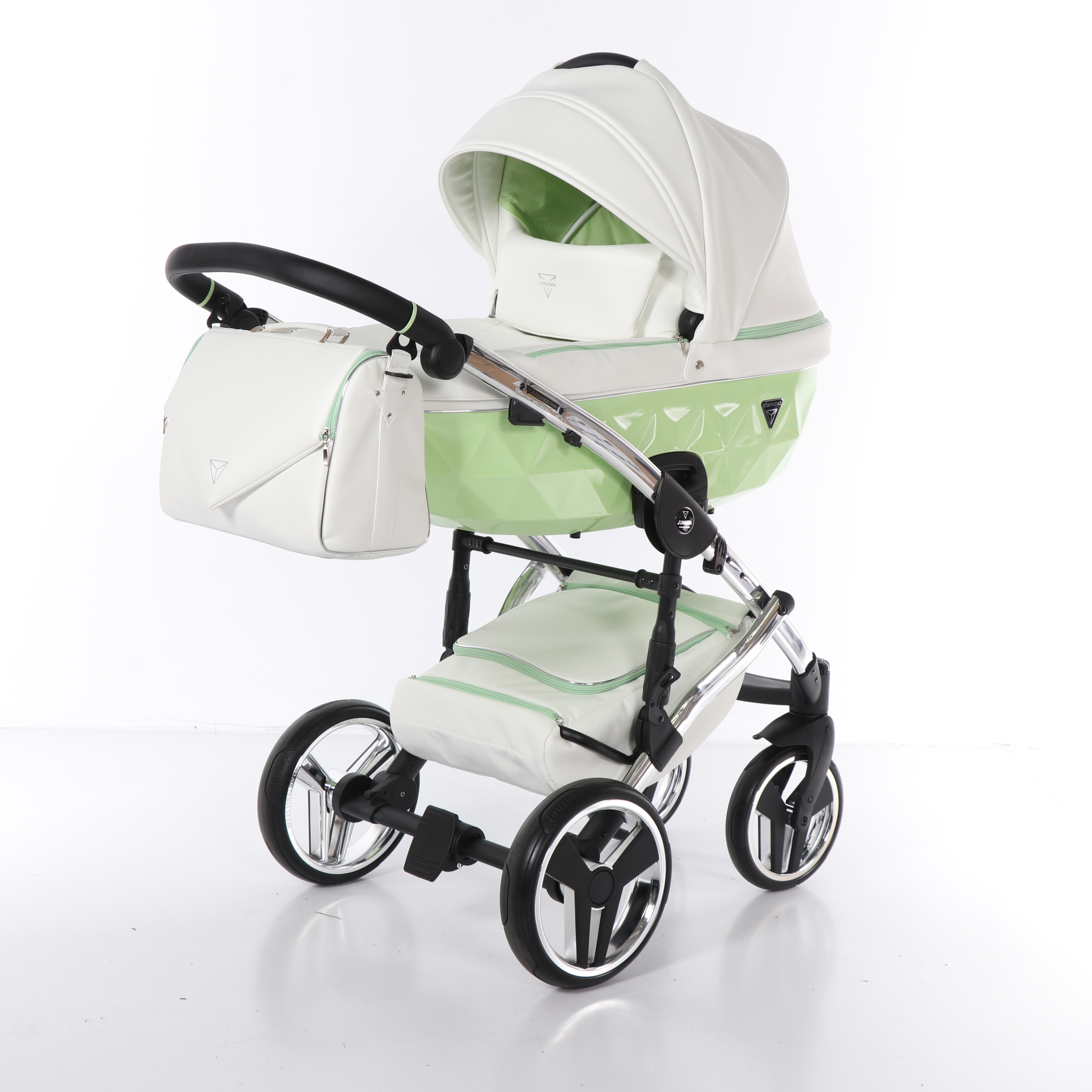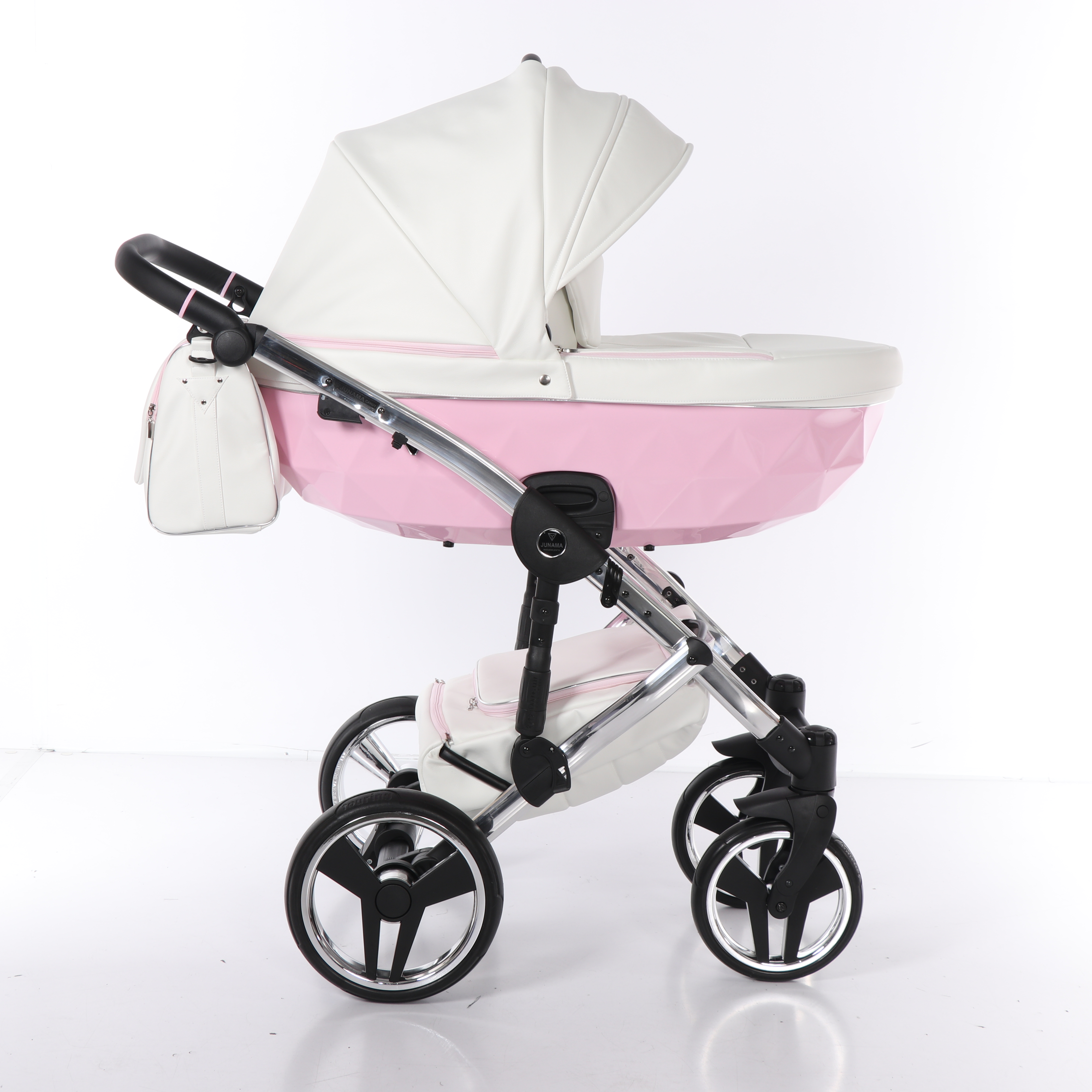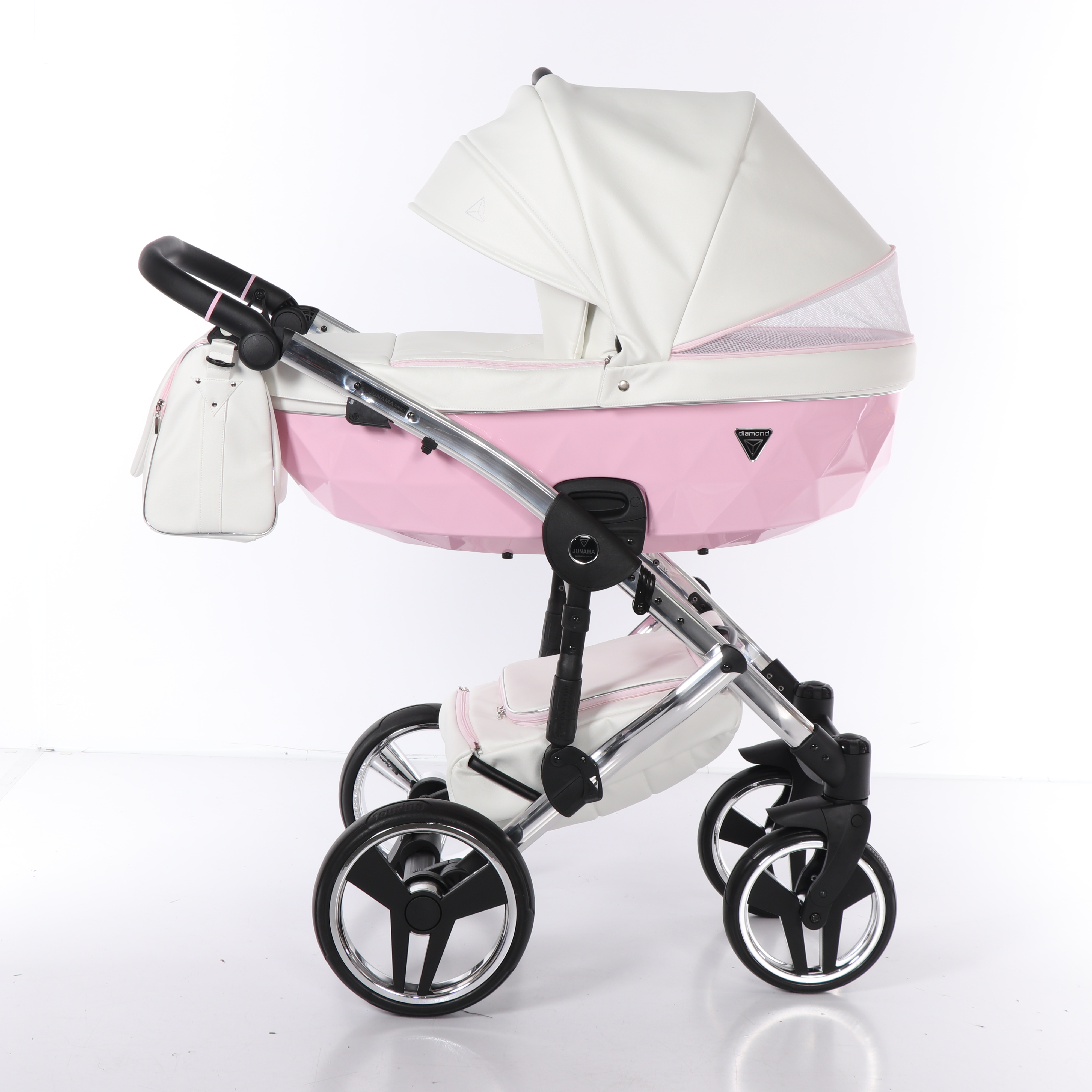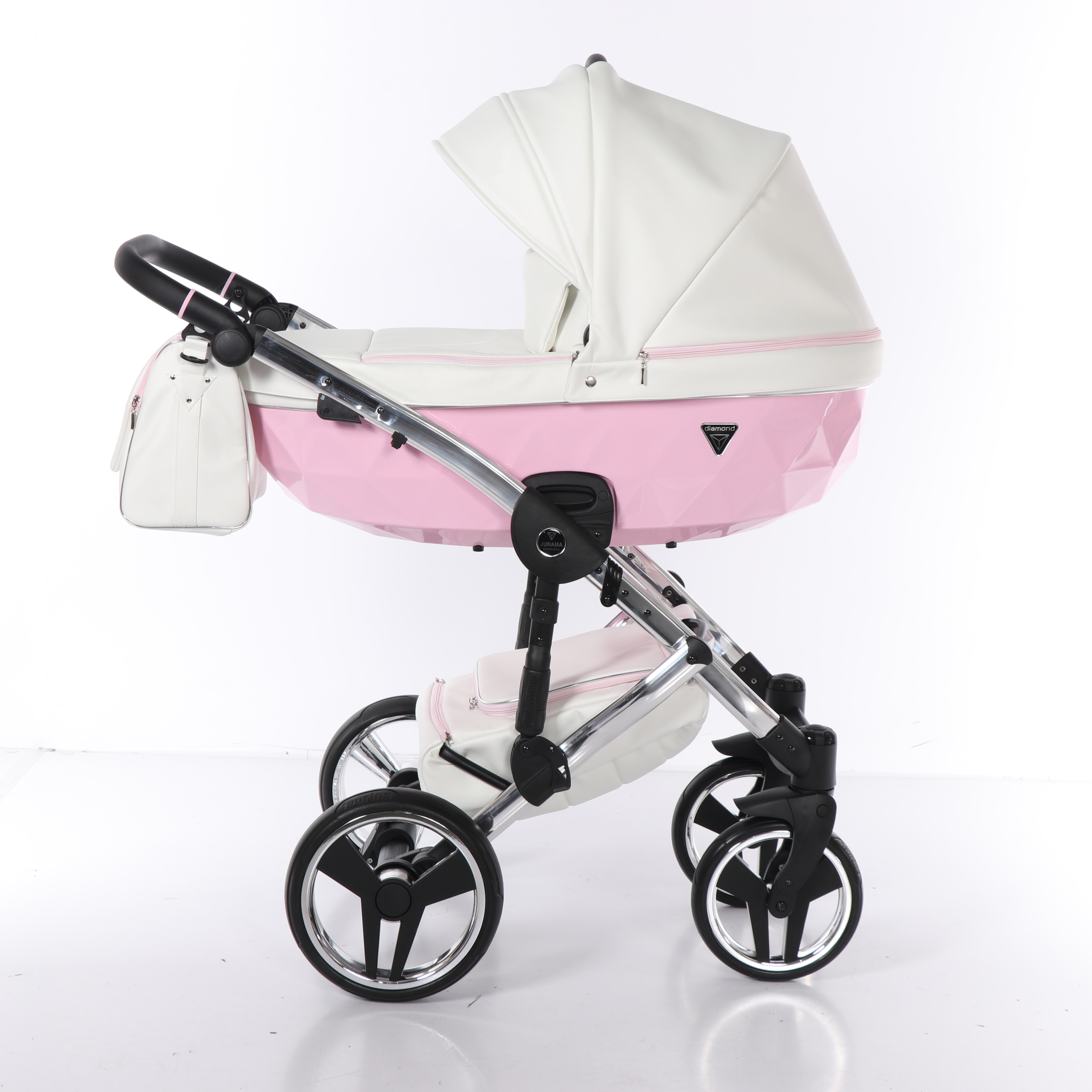 Детская коляска Junama Candy 2 в 1 (Юнама Кенди ) - новинка 2020-2021 года. Роскошная коляска с уникальным дизайном и нежным сочетанием белоснежной рамы с белой или черной кожей. Низ люльки выполнен в виде драгоценного камня и имеет нежные "карамельные" расцветки, которые ни кого не оставят равнодушным.